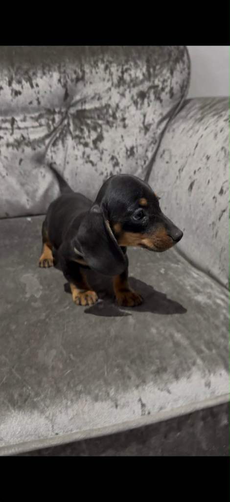 Miniature Dachshund looking for he’s forever home 8 weeks old black and tan