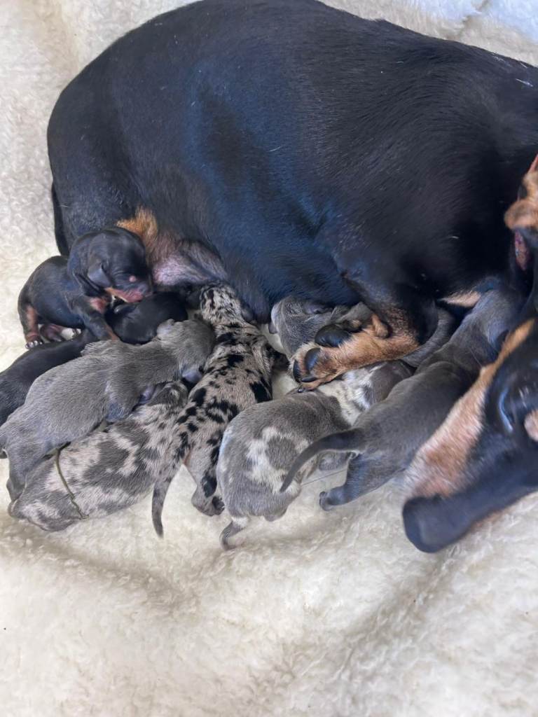 Our beautiful miniature dachshund has given birth to a wonderful litter of 6 gorgeous pups.