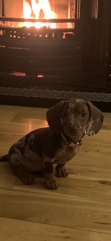 Beautiful miniature dappled dachshund pup for sale. Due to change in circumstances we are having to rehome our gorgeous dachshund. She is 6 months old and is crate trained and house trained. Mother was a lovely grey and father was black and brown.