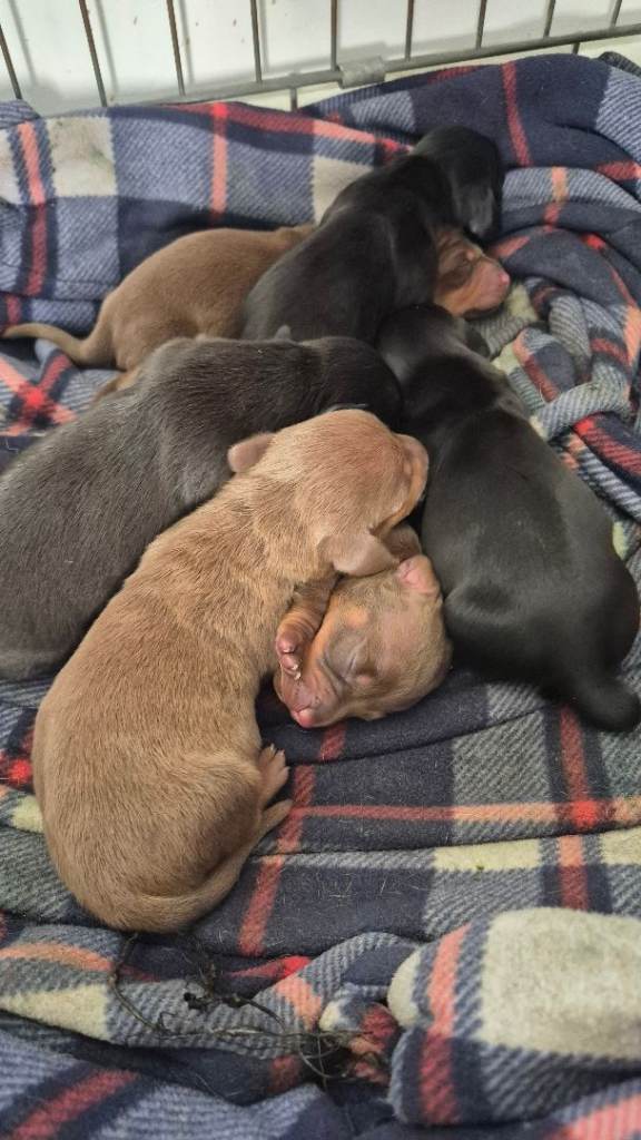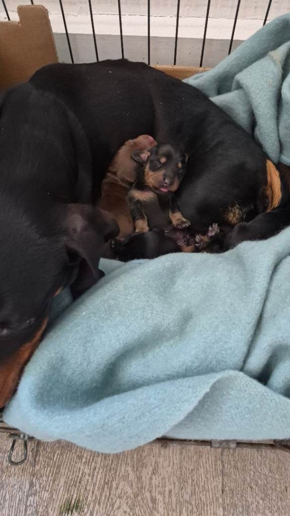 6 mini daushound puppies 3 black and tan 3 tan