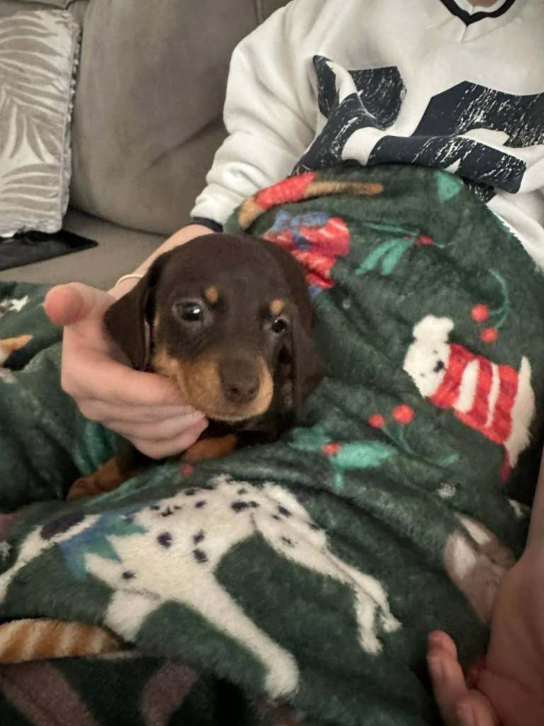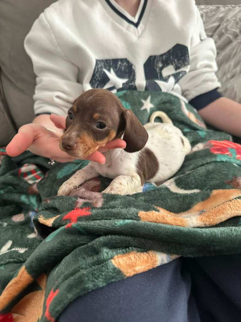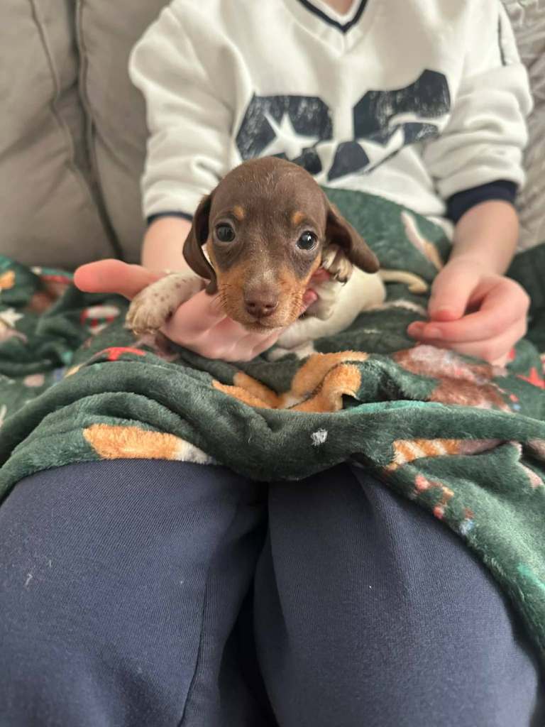 Hi looking for their new homes/family's are these adorable little puppies they are miniature dachshund, 1 girl 3 boys. They were on the 27th of October, they are wonderful pups been raised in our home with young kids, they are ready to leave from the 22nd of December. For more information please contact me. Thanks.
