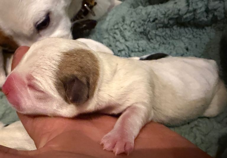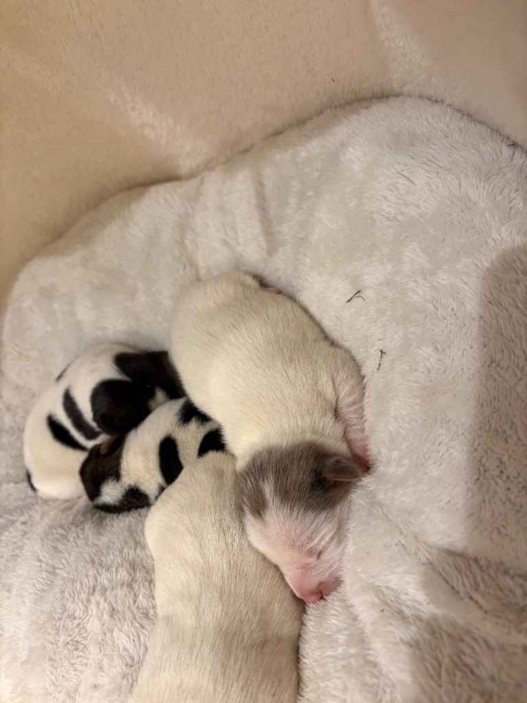 The dad of the puppies is a miniature jack Russell, Bear from “The Jack Pack Yorkshire”. He is a silver merle carrying blue and chocolate, so all the puppies will carry blue and chocolate, He is also a fabulous companion to some young children and other JR dogs. He has one blue and one brown eye.