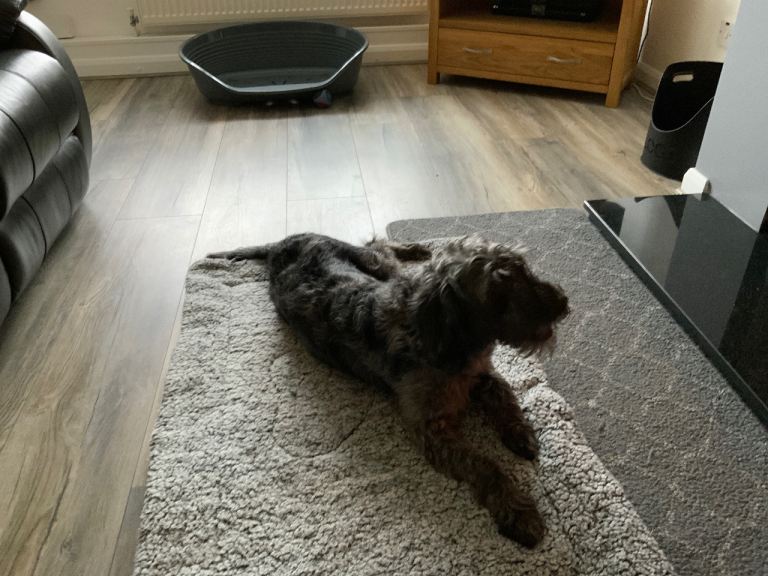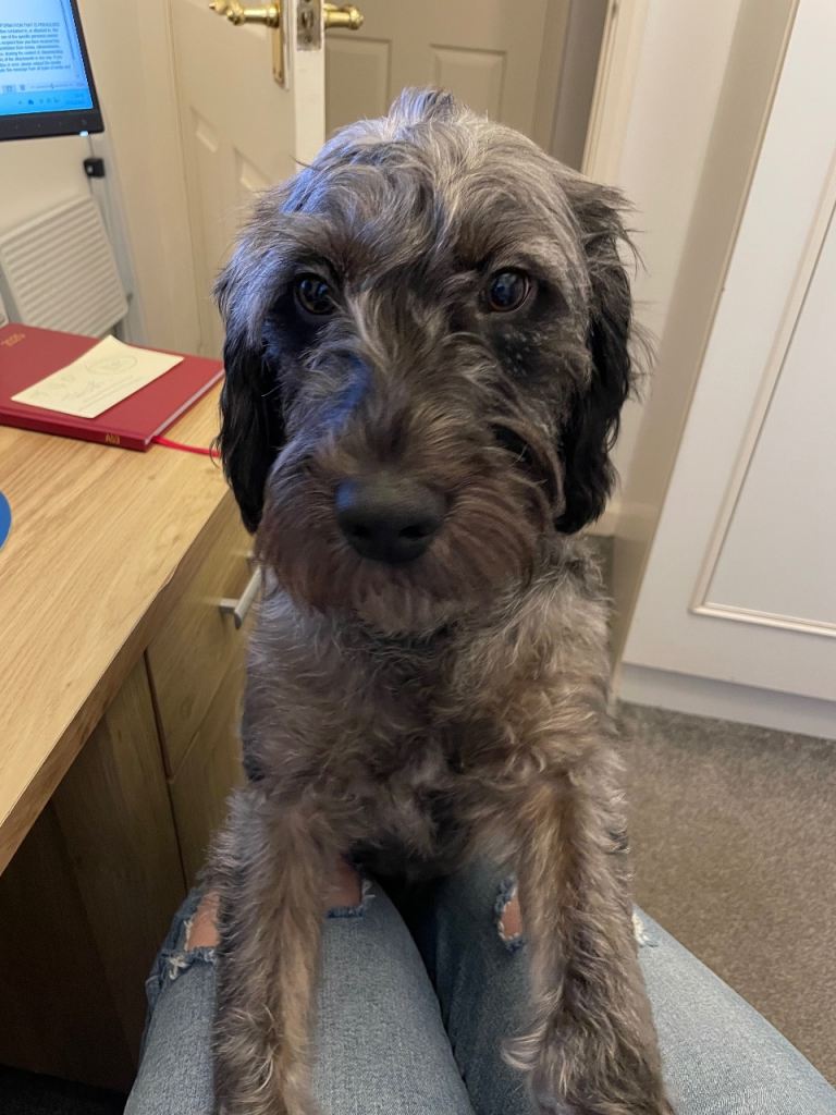 Blue Merle labradoodle, boy aged 10 months. Gentle natured dog, full of fun and life. Loves his long walks and playing in the garden. Need to re home due to illness so it is with much regret to re home him. Only people with a garden should apply and hopefully someone at home all day, as being part Labrador he is very needy. He is toilet trained and walks well on the lead.