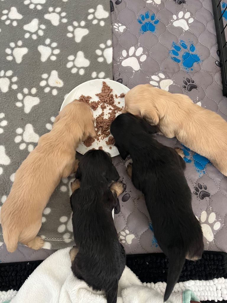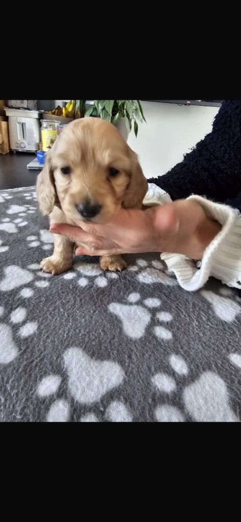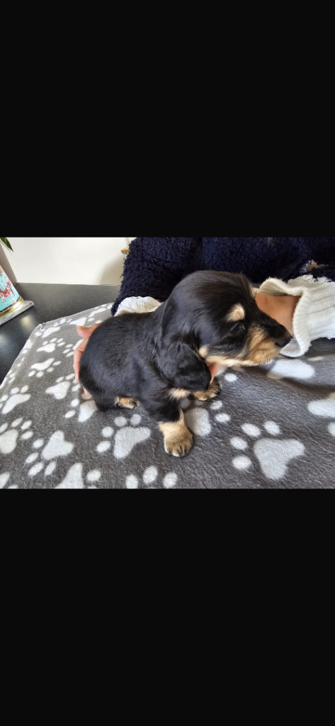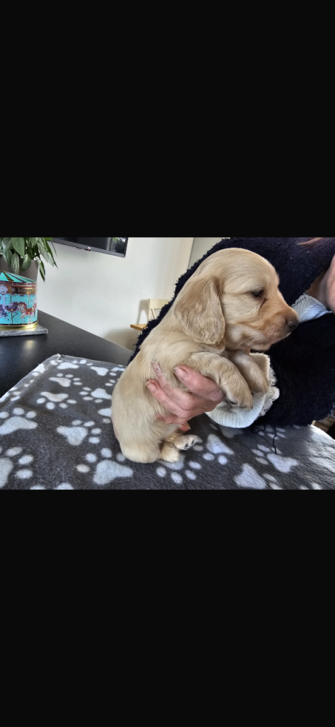 For sale 4 miniature pups available. Puppies are PRA hereditary clear, will be KC registered, vet checked and microchipped before collection. In order of photos (4 per pup) 1. Piglet - cream girl, 3rd born, (has a slight tail tip deformity) born like this hence her sweet name, she can wag it with no issue at all! 2. Tank - black and cream boy, first born and a little bruiser! 3. Little man - Black and cream boy, 4th born and slightly smaller than his brother but doing perfectly well. 4. Pichu - cream girl - 2nd born, slightly lighter than her sister. Our pups are in the heart of our busy home, getting lots of fuss and attention from all including kids from 9 to 19 and my other 5 dogs. Mum can be seen (obviously) along with Nan, great grandad and also 2 full sisters from previous litter (now 18 months old) Picture of Dad in the gallery. They will come with KC registration Microchip Up to date worming (Panacur 10%) Flea treatment (if required) Vaccination is possible however as I work for a vets the general rule of thumb is to either fully vaccinate or not vaccinate before pups go to new homes as vets don’t like to mix brand of vaccines, which can delay puppies not leaving till 12 weeks (using the L4 vacc) Puppy food Mummy sniff blanket.. Think that’s everything! 🐶🐶🐶🐶