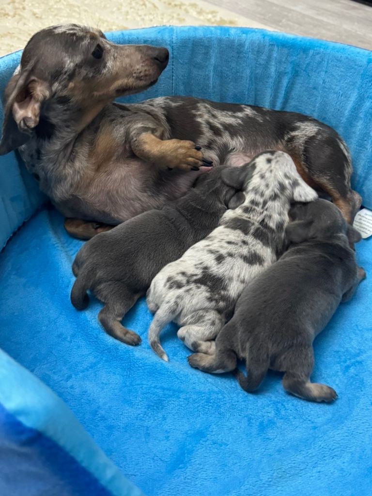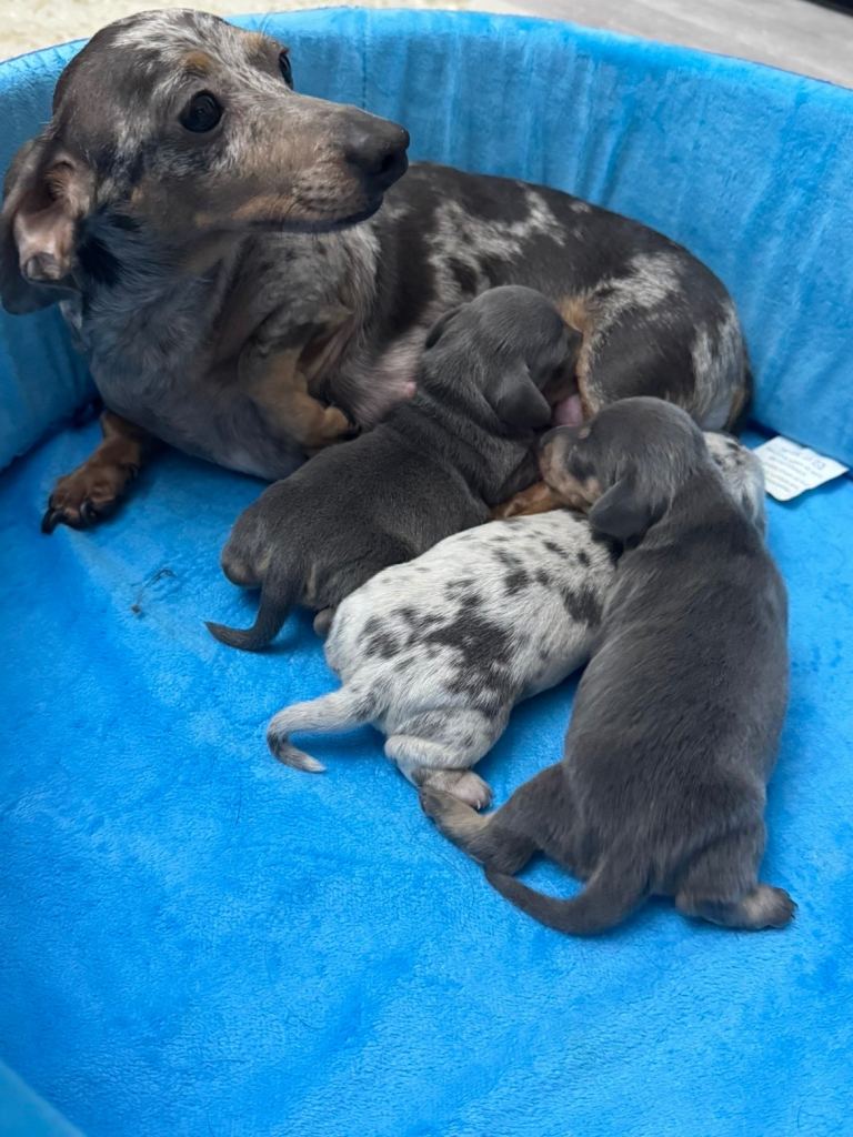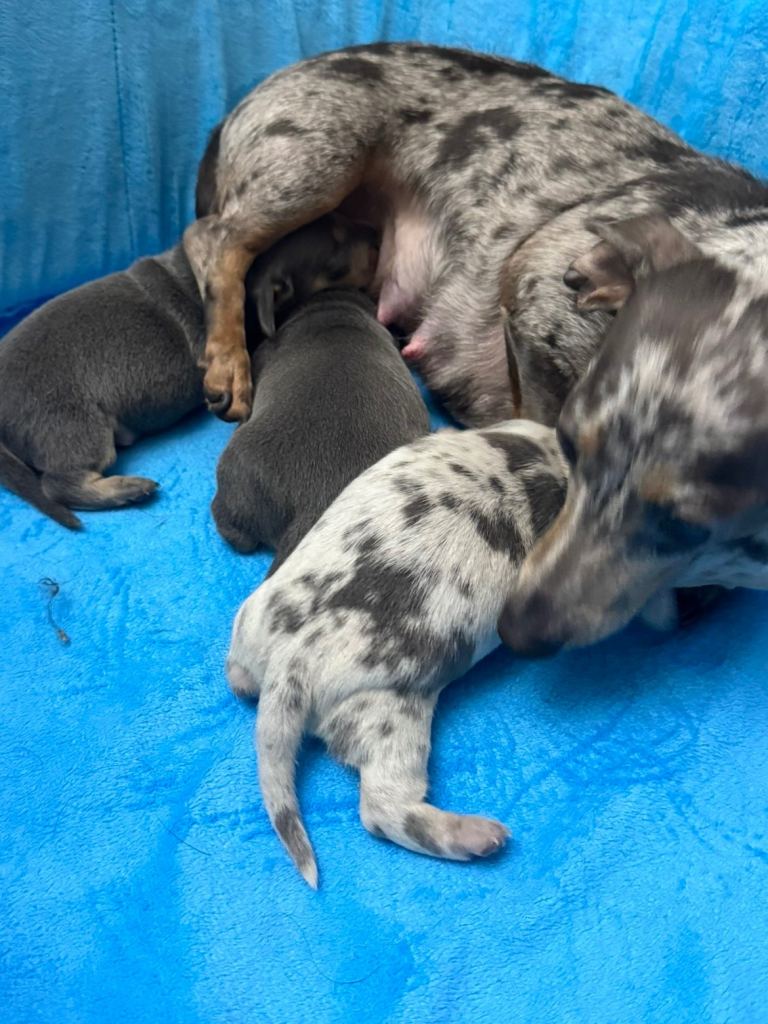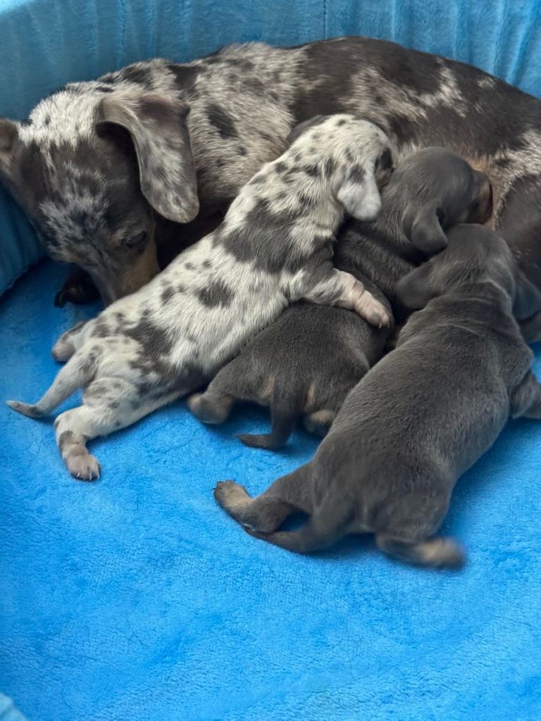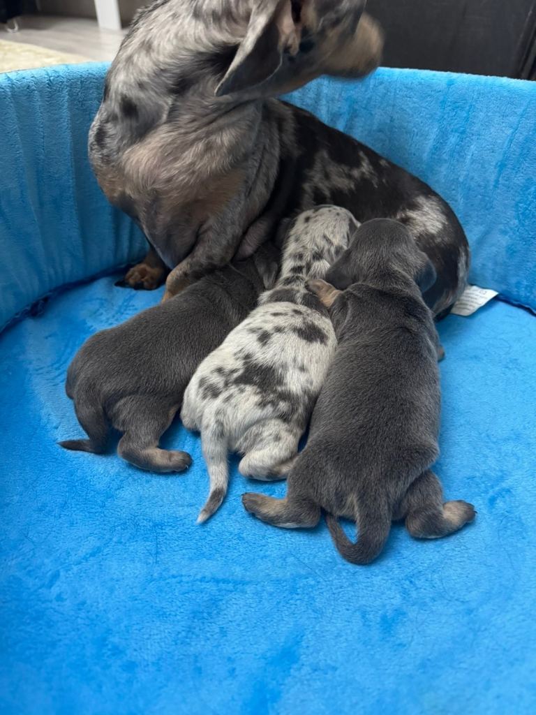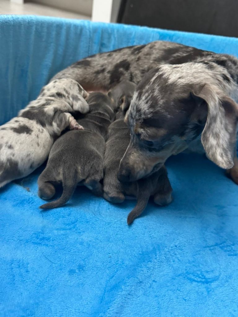 I have available 1 blue and tan female and 1 blue dapple male. Ready to leave at the end of April.