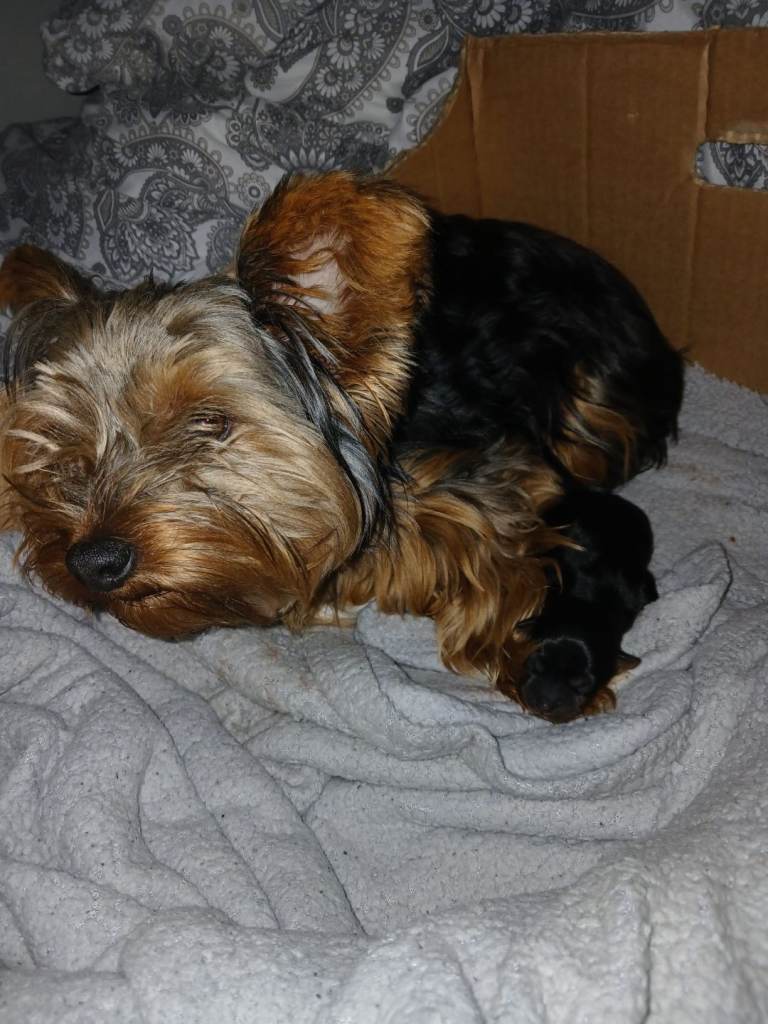 This is a first litter which was only 1 boy born mum and dad is much loved family pets both is miniature yorkshire terrier full breed all viewing is welcome will have 1st vacation partly puppy pad trained has to be a loving home will be well socially knowing to kids and a family home ready in about 8 weeks mum and dad can be seen thank you for looking deposit will secure 😊