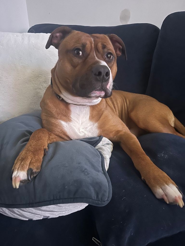 Hi, this is King. He is a fun loving dog. He loves kids. He’s not too great with other dogs at the moment but he’s still Young the reason why I have to rehome him is because I don’t have the time for him at the moment due to my mental health