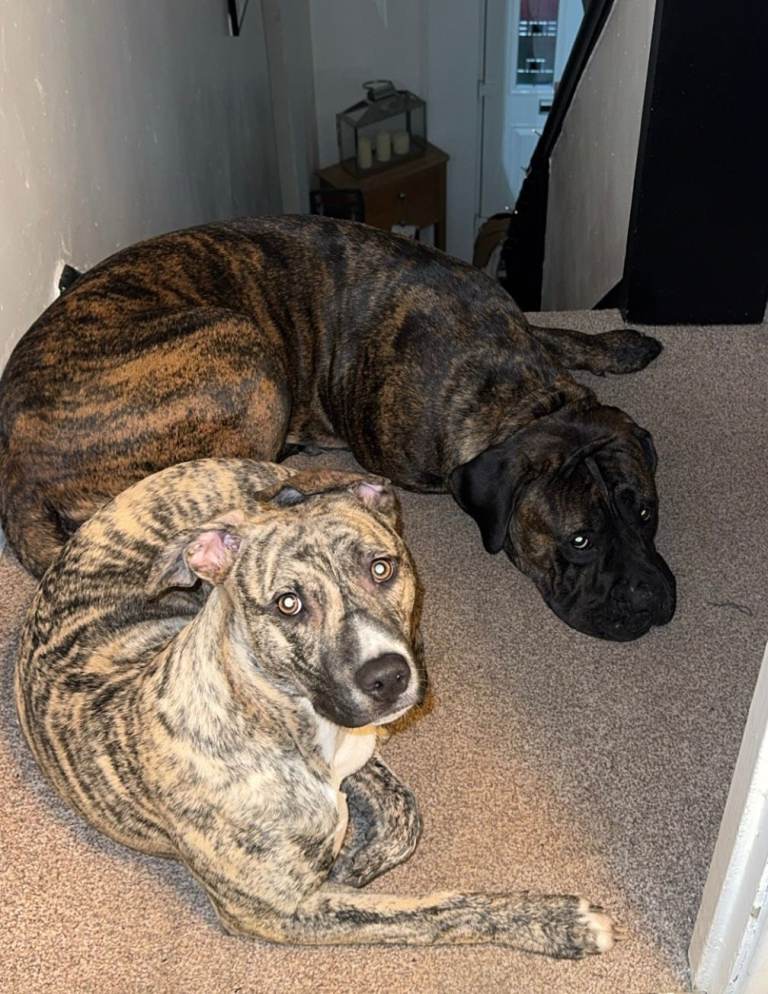 This beauty is named Lottie, she will be 2 years old on 10th June this year. She sadly due to no fault of hers needs to rehomed. She's my daughters dog who sadly last summer suffered a relationship breakdown and returned to live with me (her mum) we have tried to make things work here as I have dogs already and children and work but sadly Lottie needs a more active lifestyle with a family willing to walk her etc. She's only young and has a lot of energy and my dogs just haven't took to her which has been a hard decision for my daughter. She has looked at moving into her own place to avoid this situation but with a single wage now and rent prices being so sky high it's not possible right now. Lottie is house trained sits on command and gives paw, she comes with cage, food bowls, collar leads etc. She will take to dogs no problem she's playful but won't live with a cat sadly.