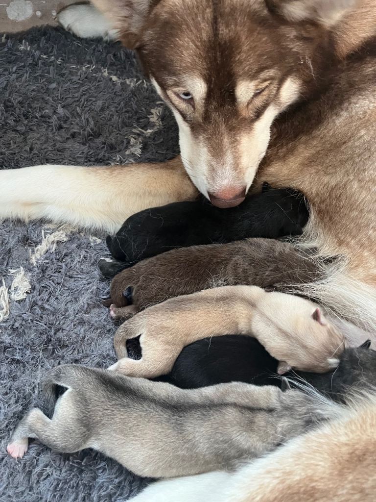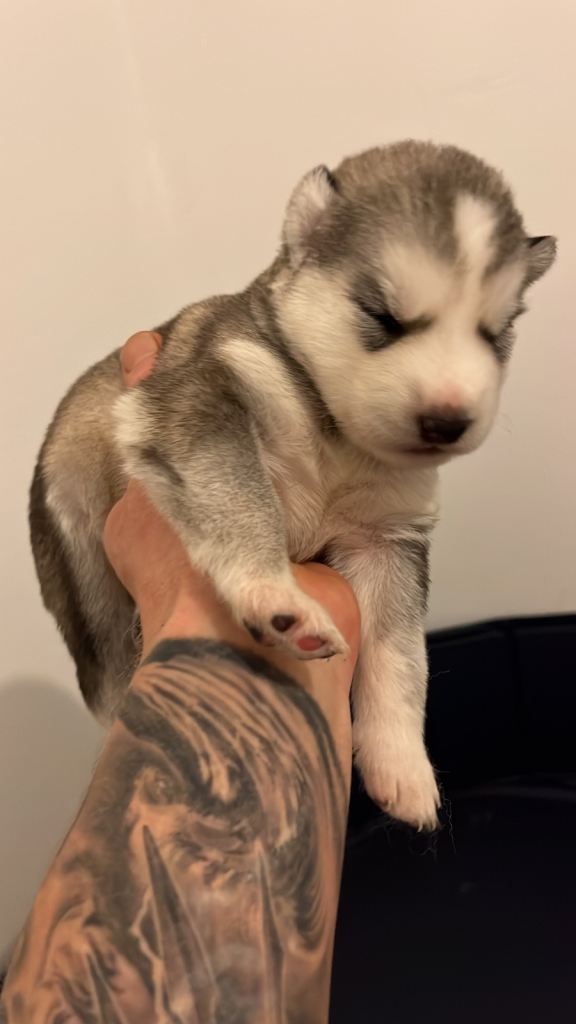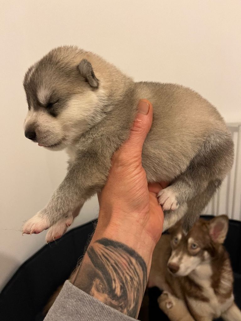 Beautiful example of the breed with even mix of Siberian huskie,German shep and malamute creating beautiful innuit puppies all large and very healthy ready to go on ready to go mid feb will be first jabbed and health checked 5 boys and one girl deposit secures