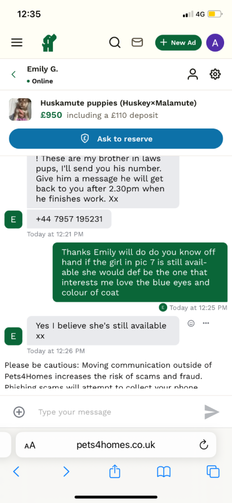 "Use the 'Reply to ad' button for your safety and privacy"
