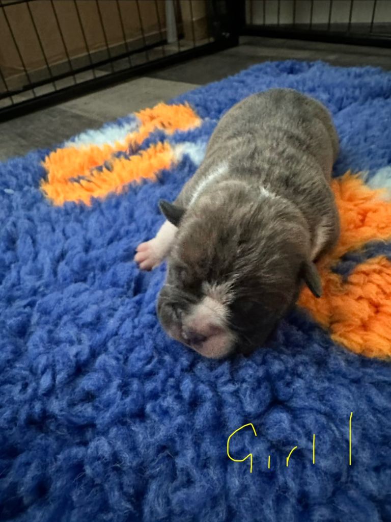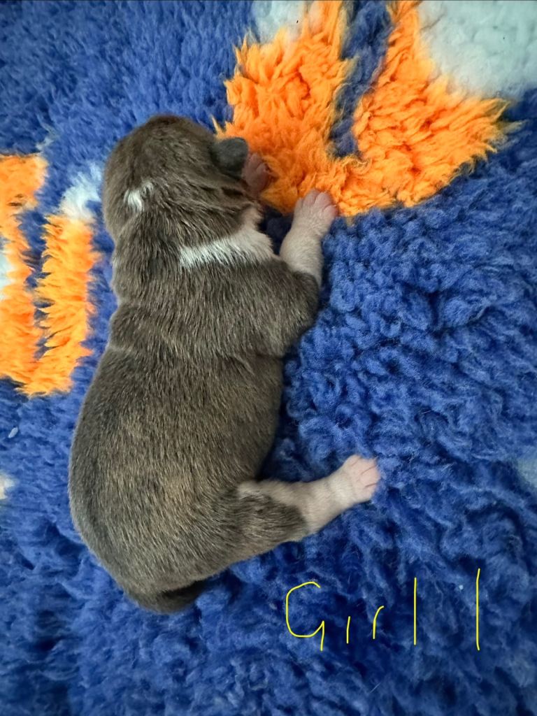 Mother - is a Blue Brindle colour, She is NBAR registered with 4 generations of lines.