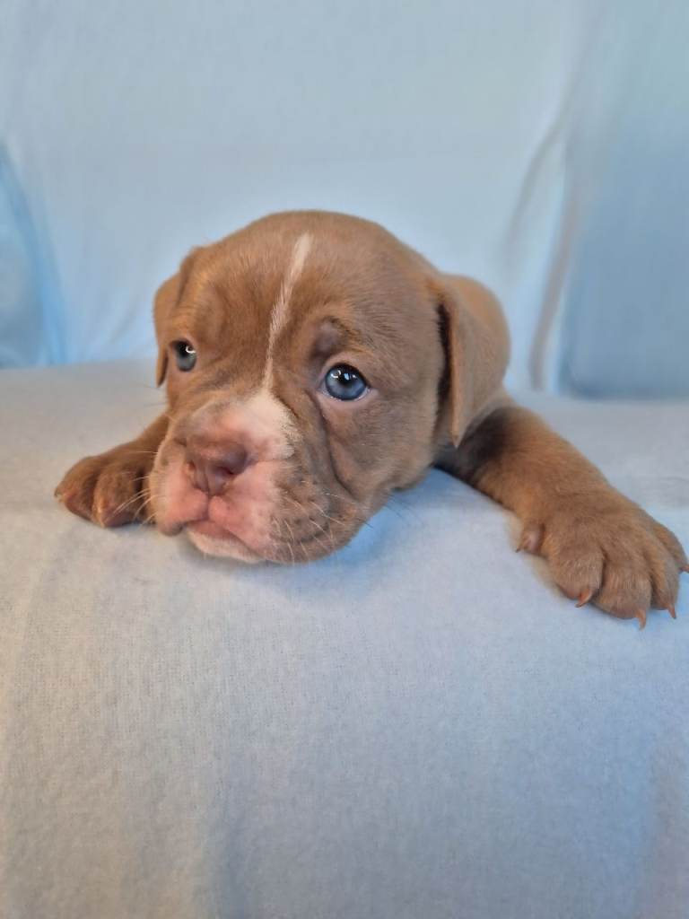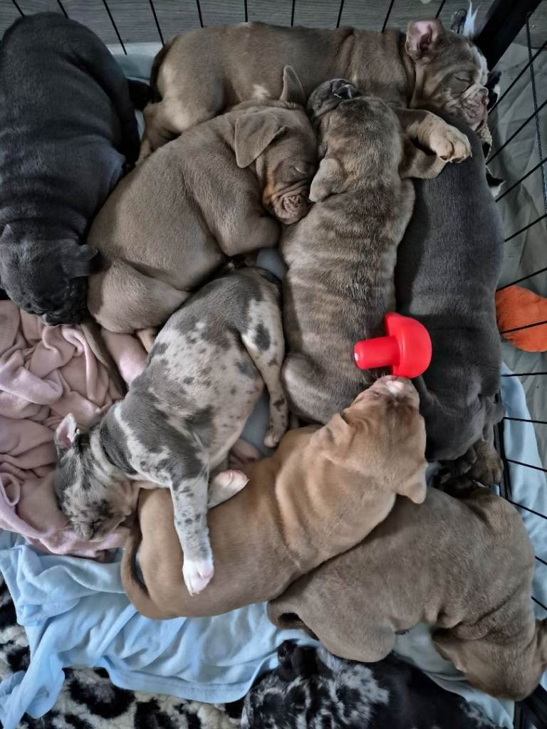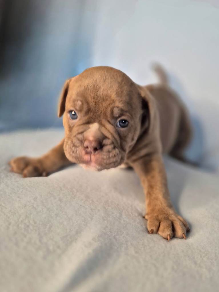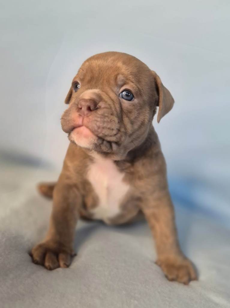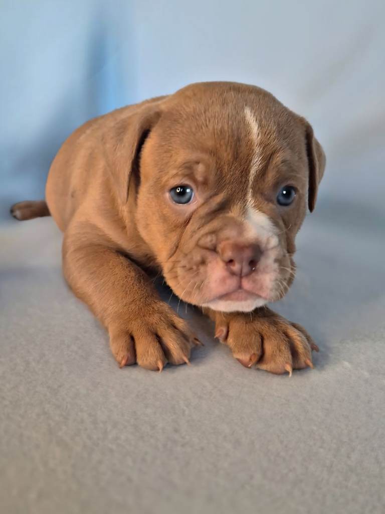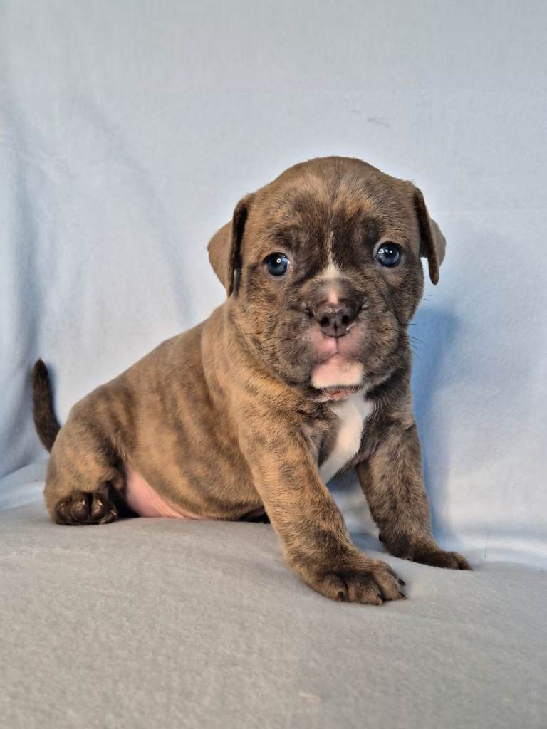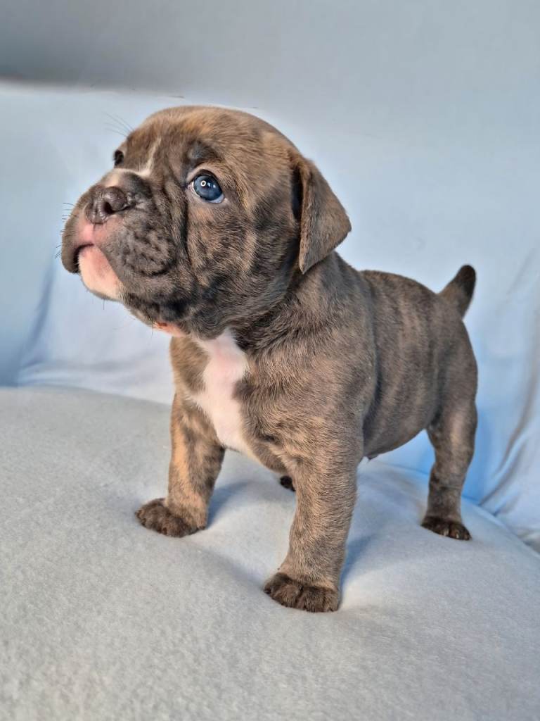 Both parents have full tails and all puppies inherit the best of multiple top OEB lines, including GeneticBullz, NBBZ, Colour Me Bad, Colour Me Good, Kartelz and Unique Oldies, giving them strong health, excellent temperament and classic Olde English structure.
