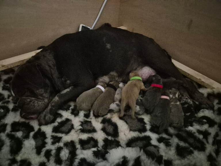 We have 5 girls 💕 and 6 boys 💚 all ready to leave on 6th April and excited to meet their potential families! These lovable, family-raised F4 Olde English Bulldogge puppies are full of personality, snuggles and love.
