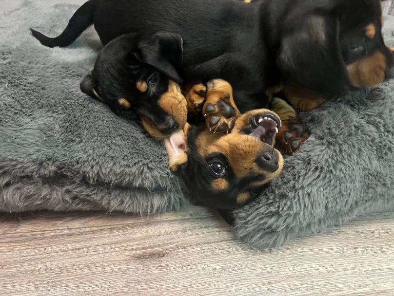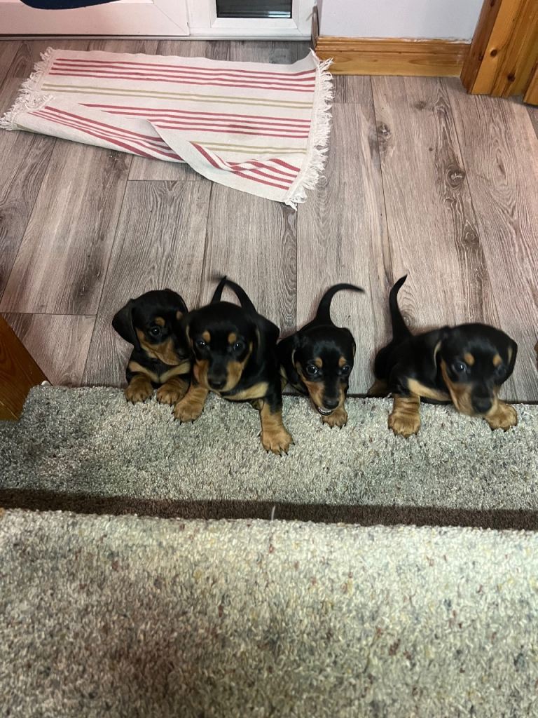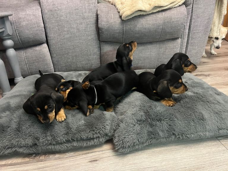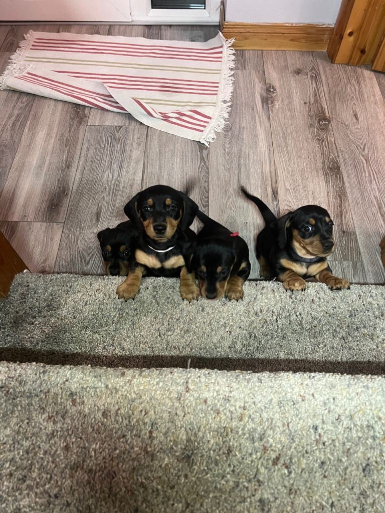 6 beautiful dachshund puppies for sale 4 boys and 2 girls. Mum and dad both very loved family pets and can be seen when viewing puppies. Puppies very social and have brilliant personalities very active and love to play and run around. All checked by the vet and will be vaccinated and microchipped by the time they ready to leave for there’s new homes. Born on 2 of January and ready to leave on 28th of February if you interested get in touch. £700 female £650 male Deposit required. Red collar girl sold, green boy sold, yellow boy sold, light blue boy sold