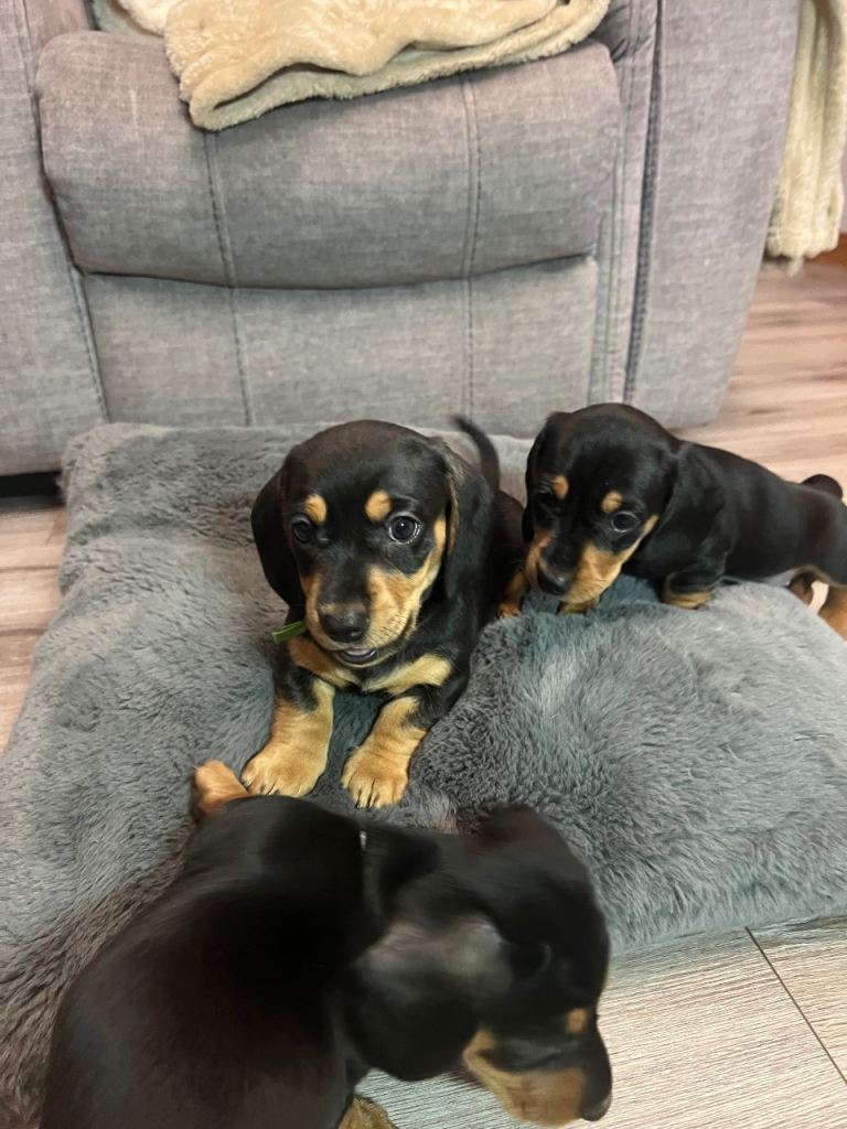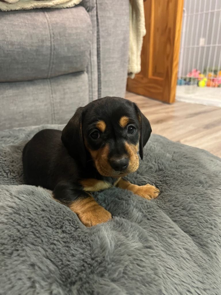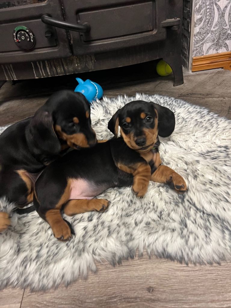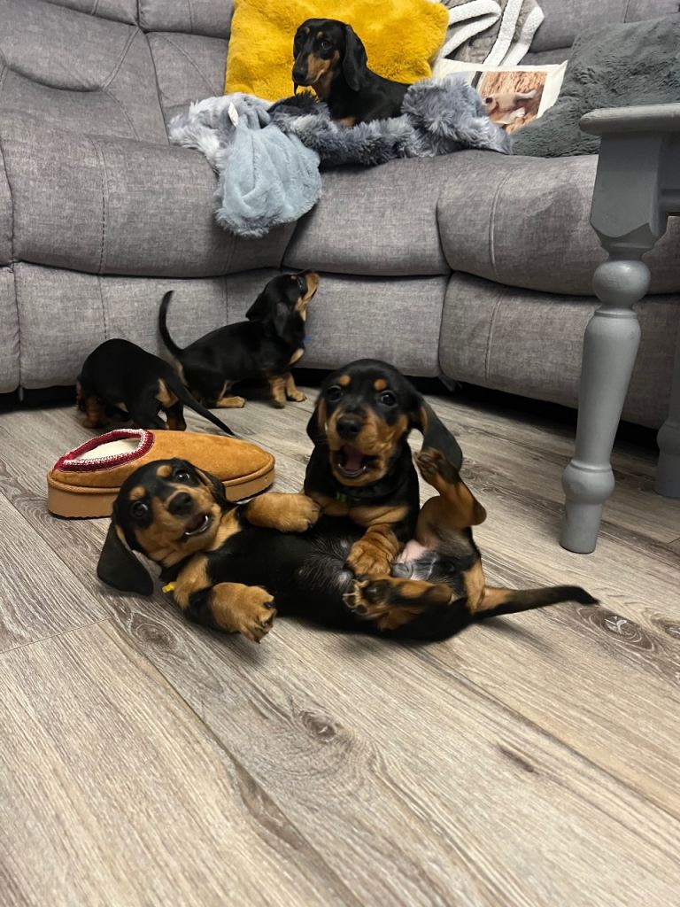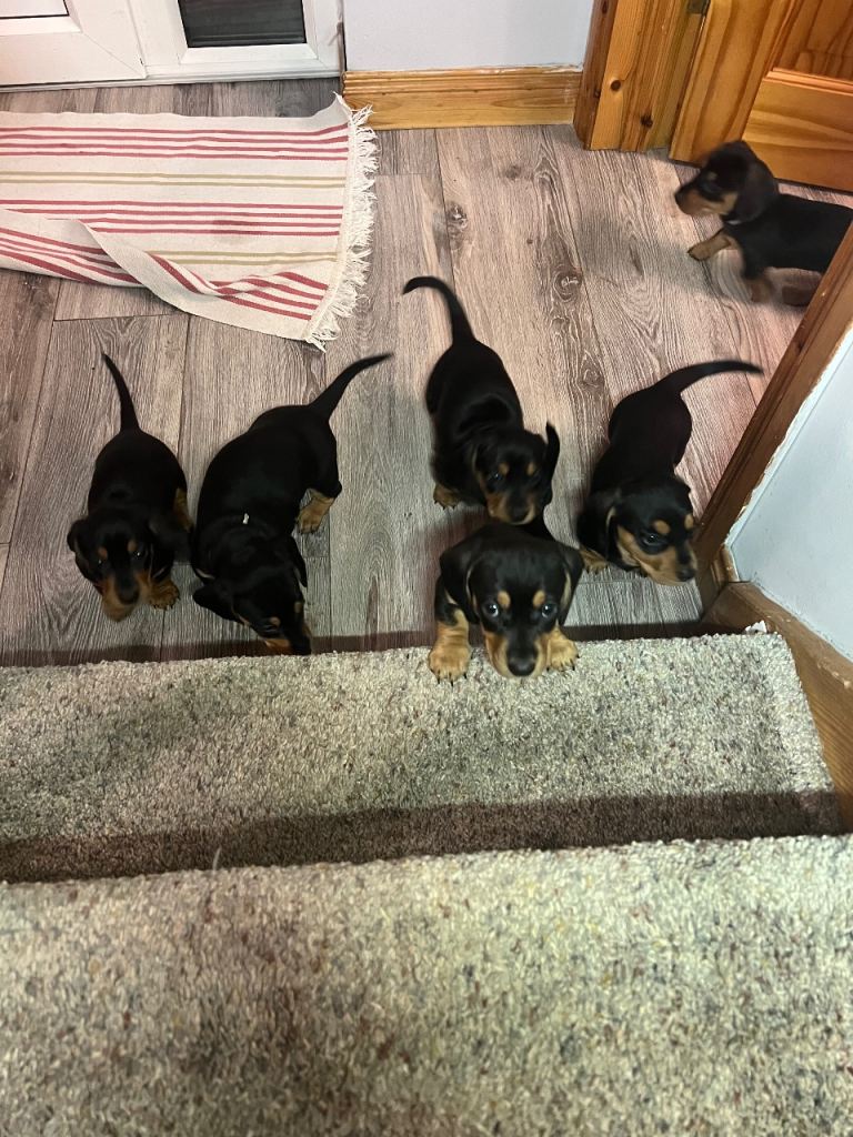 6 beautiful dachshund puppies for sale 4 boys and 2 girls. Mum and dad both very loved family pets and can be seen when viewing puppies. Puppies very social and have brilliant personalities very active and love to play and run around. All checked by the vet and will be vaccinated and microchipped by the time they ready to leave for there’s new homes. Born on 2 of January and ready to leave on 28th of February if you interested get in touch. £700 female £650 male Deposit required. Red collar girl sold, green boy sold, yellow boy sold, light blue boy sold, blue sold