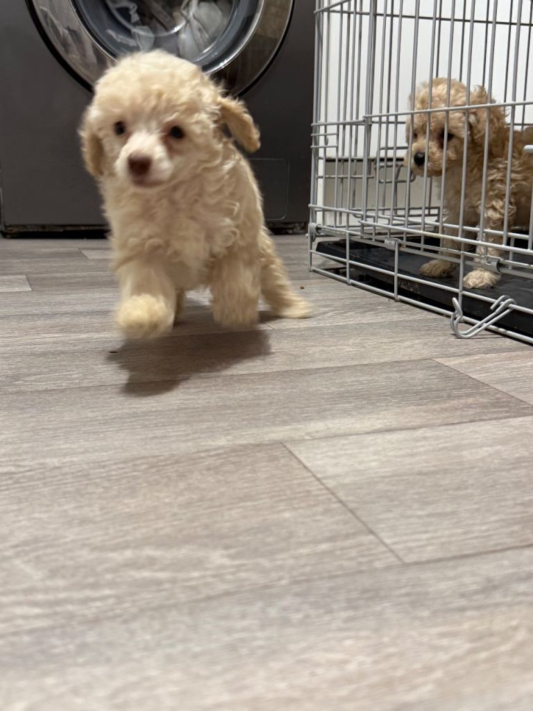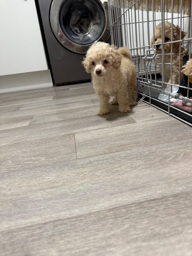 They are on a tight flea and worming program. They have hypoallergenic coats so perfect for those who are allergic to animal hair. Both parents are Kc registered however the puppies won't be due to the being pets and not breeders. All pups will leave with scented blanket and toy with the biscuit they have.
