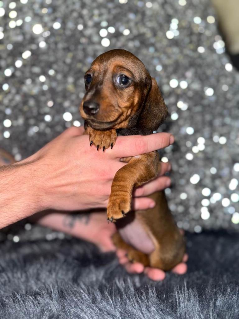 I have a beautiful male red Dachshund puppy left, 12 weeks old, looking for his forever home.