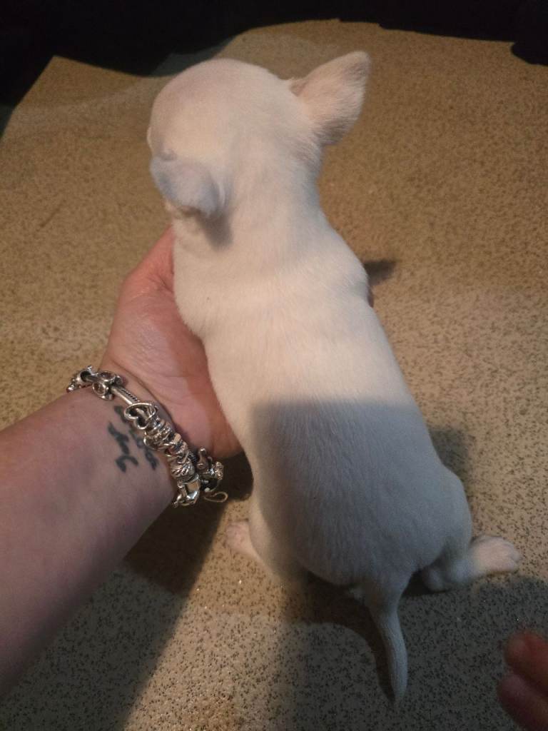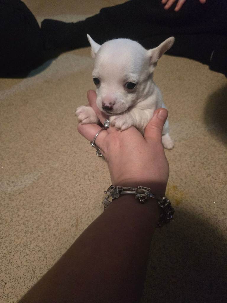 My chihuahua has ad babys there is 2 girls n 1 boy there is a full white she is girl there is a like dapple one she is a girl n there is like n brown colour boy one mum can be seen they have been fetch up around kids they r so loving puppies they will be fleas n wormed n micro chipped before they go they r ready to go on the 10 January will be taking deposits off 100.00 non refundable the boys are 800 the girls r 850 mum n dad r about 3kg NO TIME WASTERS please they r ready to go know