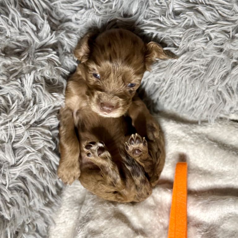 So me & the husband’s Princess Oreo & Prince Otis has produced 8 fantastic furry babas, we so could not wait ( our first unplanned & last litter given we have just moved home) As can be seen from pictures colours are absolutely exceptionally beautiful & each one different from the next although there are 2 sets of Twins in our litter. If you are genuinely interested in a puppy feel free to get in touch, leave a deposit so your puppy is secured quickly as they will go fast. You would be more than welcome to visit anytime within reason, if arrangements are made! We have nicknamed them all only for our use to tell them apart which isn't too hard-ish but 💜 5 x Girls 💜 & 💙 3 x Boys 💙 - If you have already got a name in mind picked out for your little bundle of joy we can acustom them with their new name before leaving to go to there forever home ( please 5 ⭐️ homes only ) All puppies will leave with everything listed below.