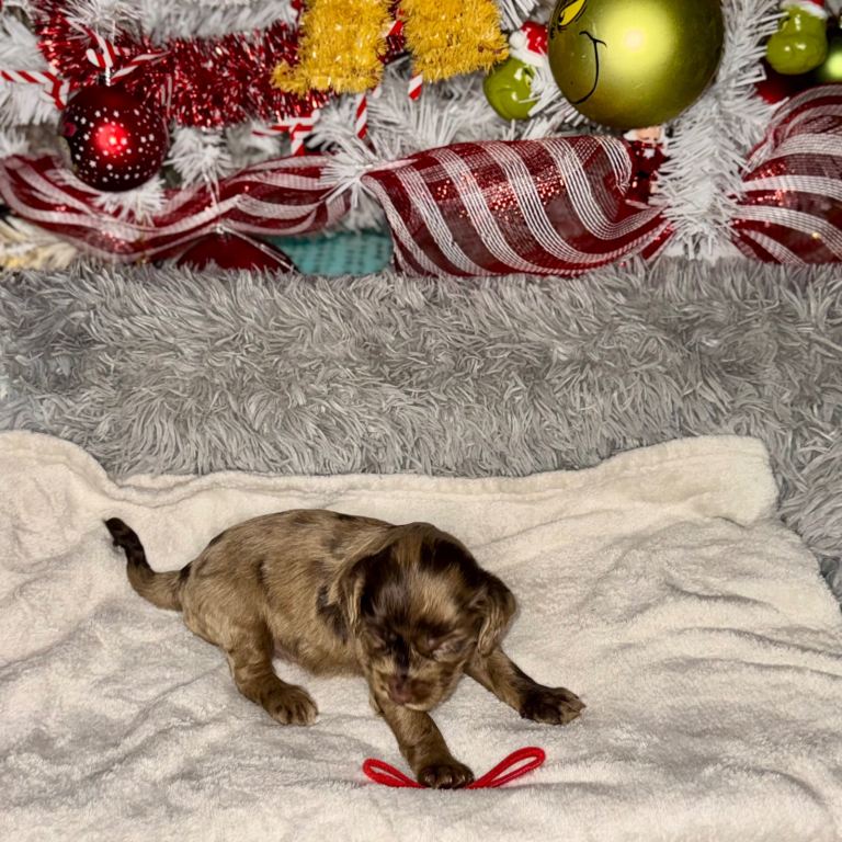 Puppy 5 - Green Boy 💚 Twin - Chocolate with White Chest also White Paws **RESERVED**