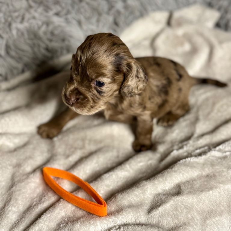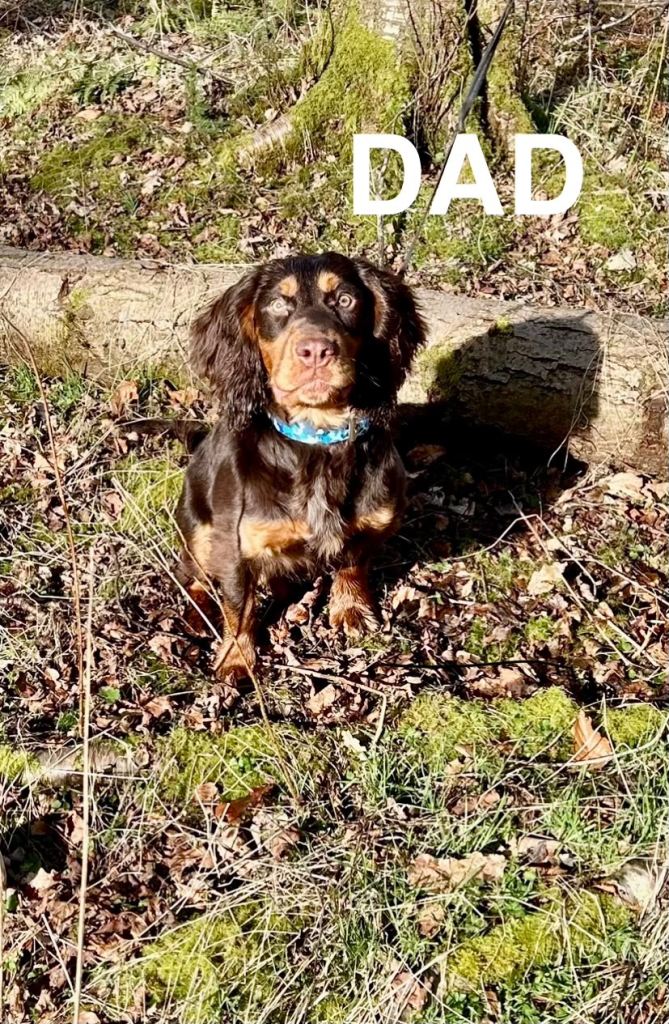 Oreo - Dam ( KC Registered) is a beautiful example of the WSC, absolutely stunning colours & marking’s. She is hereditary clear ( parents certification is all available ) she is one of the best looking girls around & a stunning and a very fine example of the cocker spaniel line from the very best, same can be said for her nature she just loves to play scent games & fetch also loves her quiet attention time up on the sofa. Her dad is a beautiful stud of a man whom she takes her colours from & her mum is an Orange Roan whom she takes her beautiful playful nature from & Green eyes.