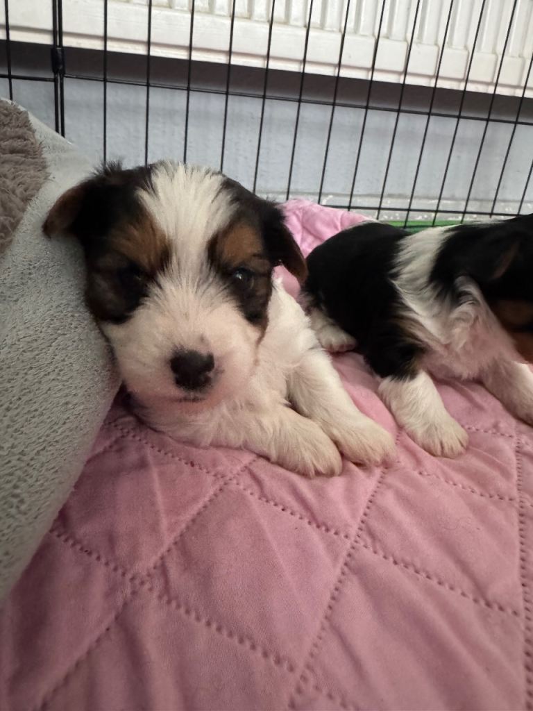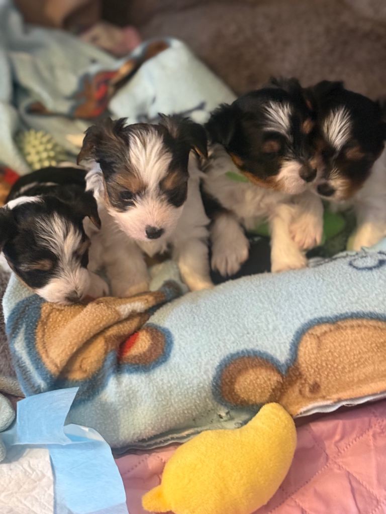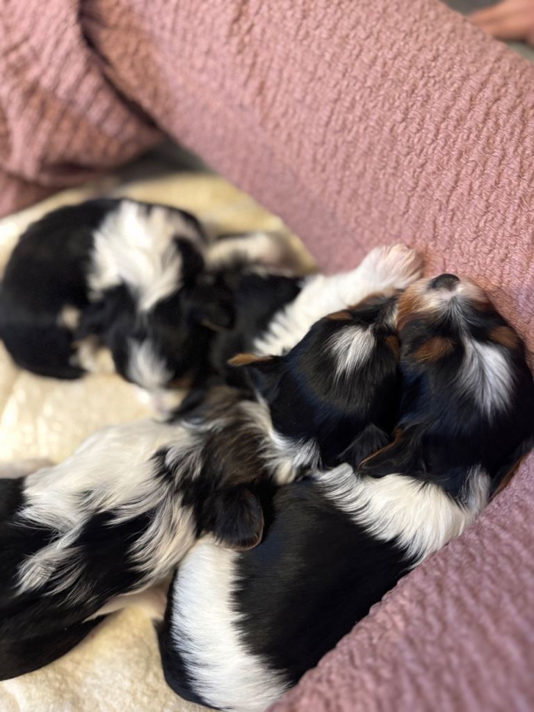 Only two puppies are now available: one boy, Theodore, and one girl, Zoey. Both are very sweet and playful, and they wonโt be available for long as there has been a lot of interest. If you would like to reserve one, a deposit will be required to secure your chosen puppy. ๐พ