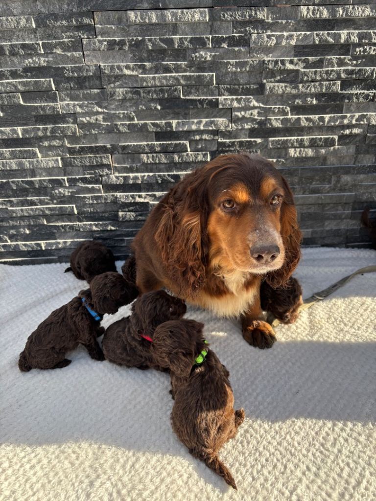 We are delighted to announce that our beautiful girl Josie has given birth to a stunning litter of Cockapoo puppies.