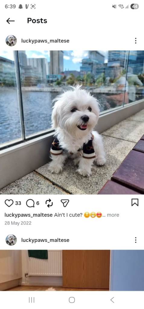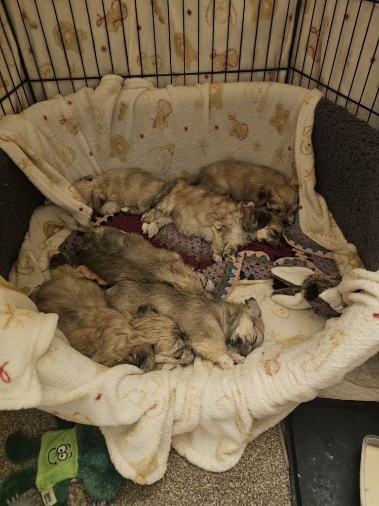 5 beautiful fluffy puppies available. Four boys and one girl for sale. Mum had 6 healthy puppies and we are keeping one ourselves. Puppies will be small as mum is 6kg and dad is 4.5kg. Dad is a kennel club registered pedigree Maltese who we used as a paid for stud. His papers are available and his Instagram is @luckypaws_maltese. Mum will be available to see when purchasing a pup. Mum is a family pet owned by ourselves and pups have been brought up in the living room around mum, my family and our other resident dog. They are used to busy household noises and have been handled by children too. They are very playful and used to puppy pads for toilet training. Pups have been named for ease of identification. Roo is the girl and the rest are boys.