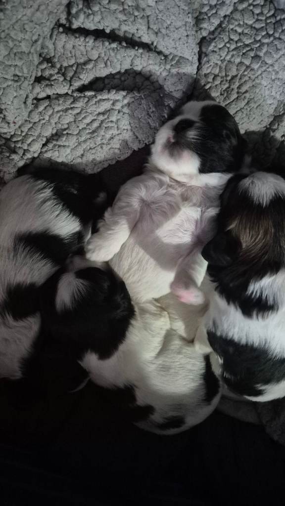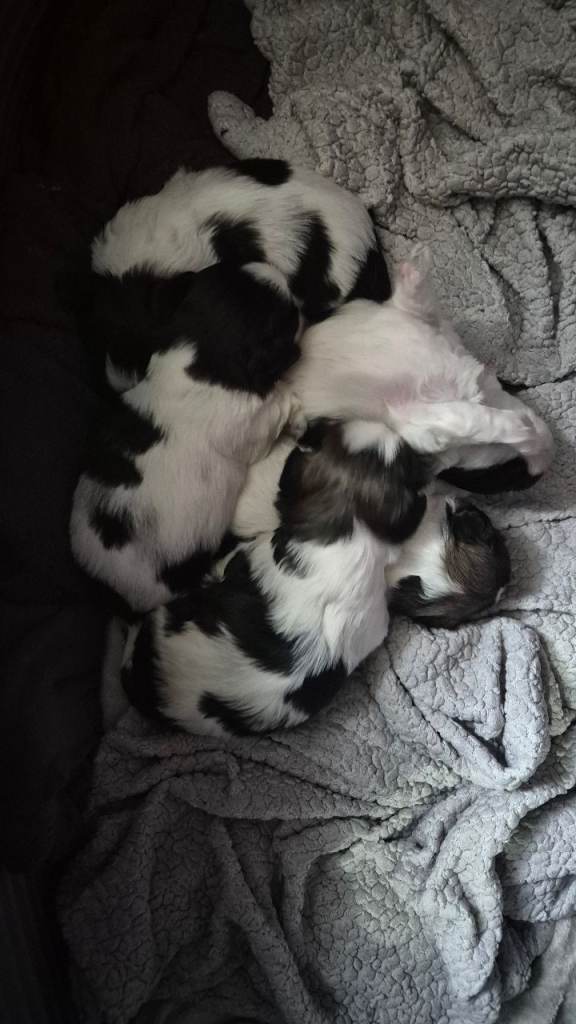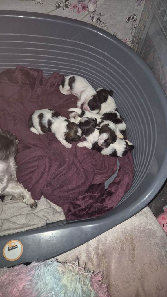 Boys are £800 & £950 for Girls. They come fully potty trained with 1st injections health check and chip. They come with goody bag that includes puppy food, that I've weaned them on teddy & blanket that they have had all the time there here with mam , dad & sisters and other little bits & pieces like brushes & bowls etc. I also offer first 3 free grooms and offer a boarding service if needing to go on holiday or work so they can come play with their fur family xx