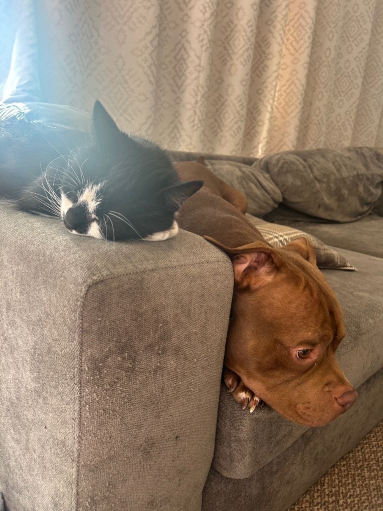 He has been raised in a family home with two young children and cats, and he has always been fantastic with both. He is calm, patient and loves a cuddle