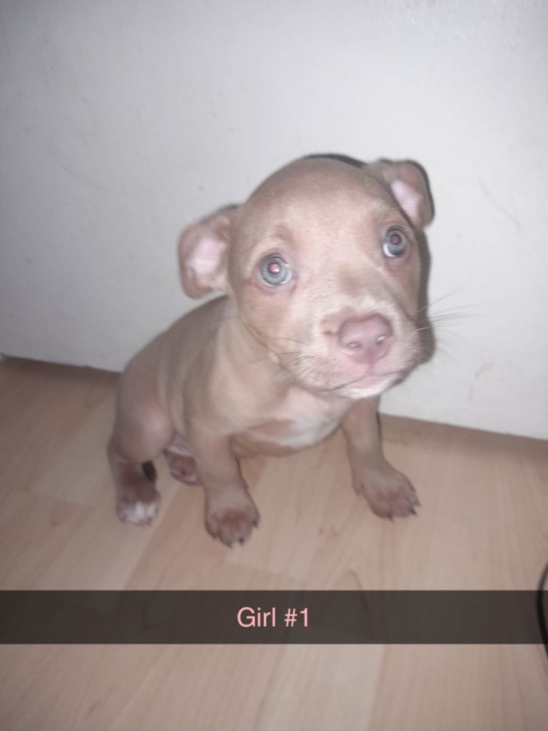 5 beautiful pocket bully pups from a litter of 6 (1 male sold). They are 9 weeks old as of 24/03/26 and come with first injection. Both parents pocket bullies and can have a look at their instagrams to see adult genetics. Puppies are ready to go