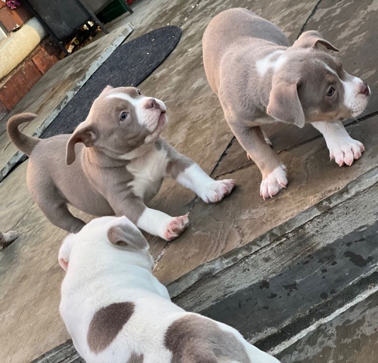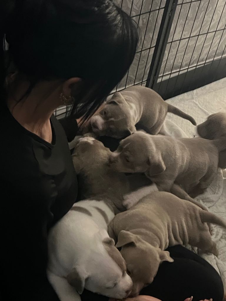 I have 5 beautiful puppy’s looking for their forever home 🇺🇸🦍 🏡 2girls 🩷3boys 🩵 love kids and live with cats 🥰 abkc registered 🇺🇸 ✔️ none refundable deposit is required to secure a pup 🇺🇸🦍❤️ 5* home only 🦍🇺🇸❤️