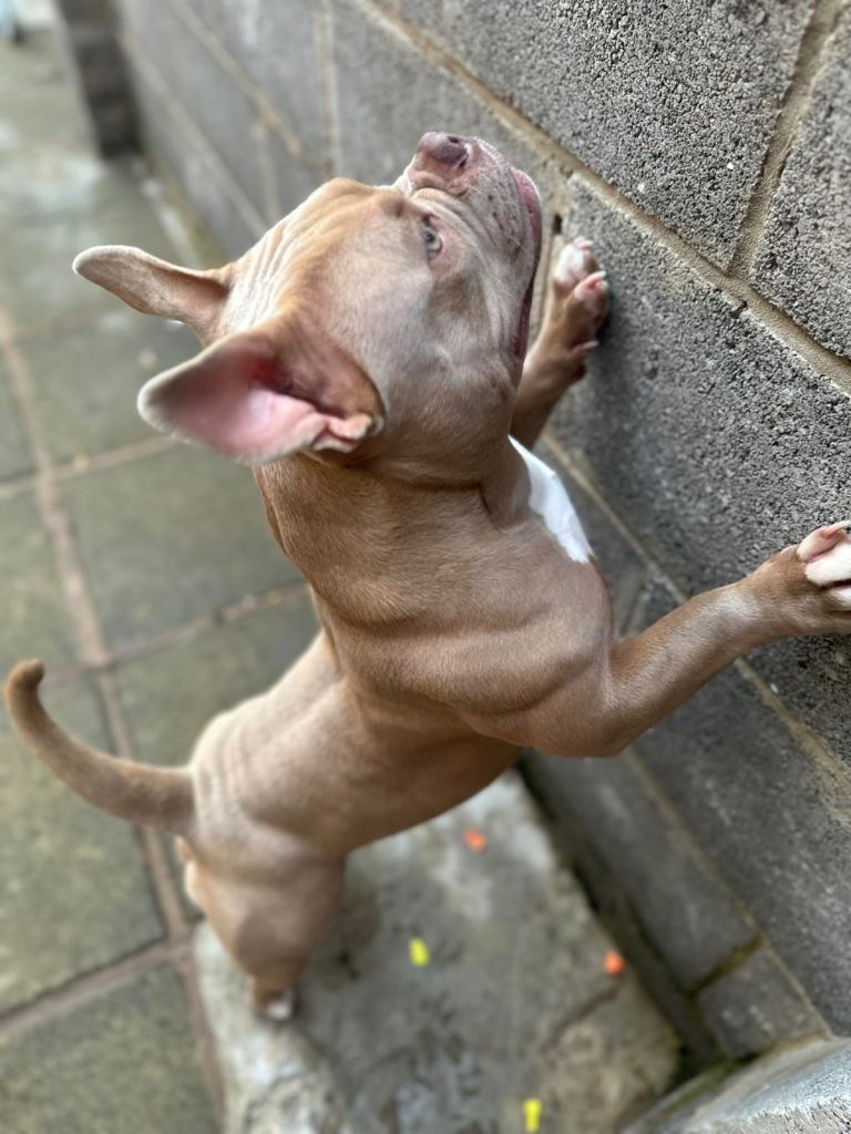 We are sadly looking for a loving new home for our dog Nelly, who has a lovely champagne-coloured coat. She is very playful, affectionate, and fantastic with children, making her a great companion for families.