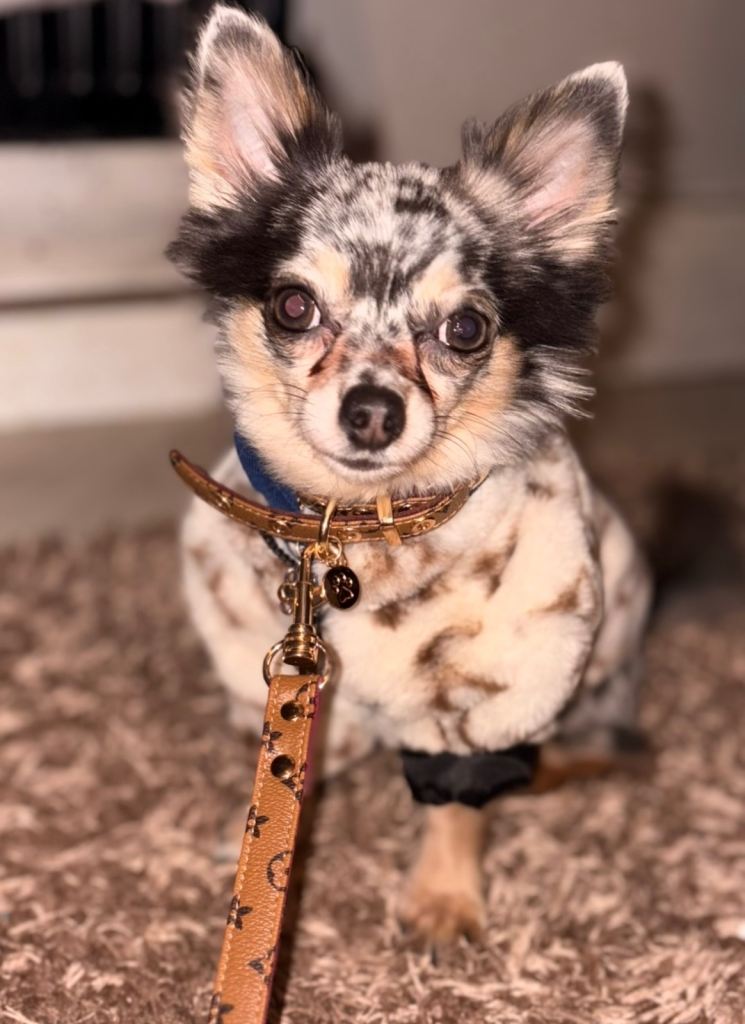 Dad Fendi is a deer head Merle Chihuahua
