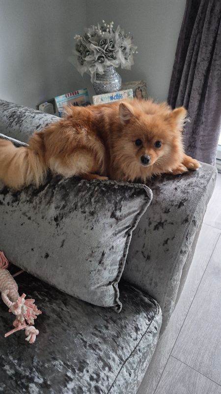 We are looking for a loving new home for our beautiful 8-month-old Pomeranian puppy. She is a very active, happy little dog with a fun, playful personality and lots of energy.
