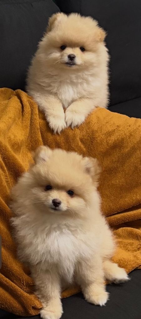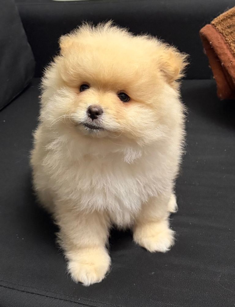Hello! I have two adorable purebred Pomeranian puppies available — one girl (£2,100)and one boy (£1.600). They will come fully vaccinated and with all essential care completed. They’ll be ready to leave for their new homes after 19 February 2026. Both mum and dad can be seen in the photos. They are fluffy small pure Pomeranian.