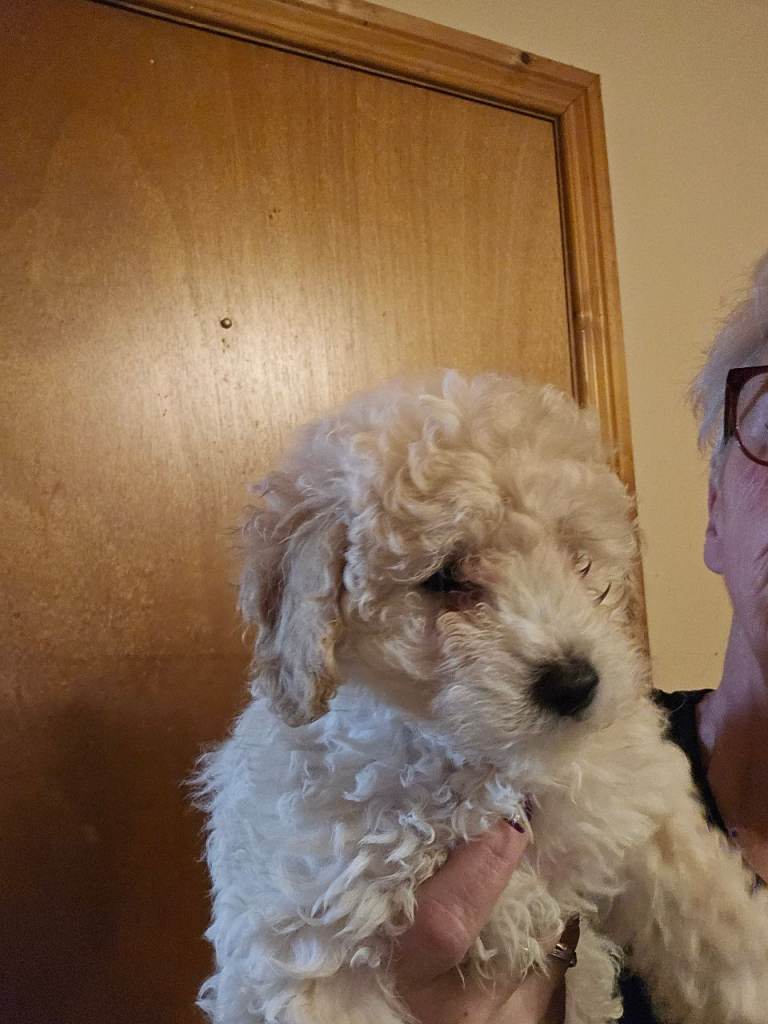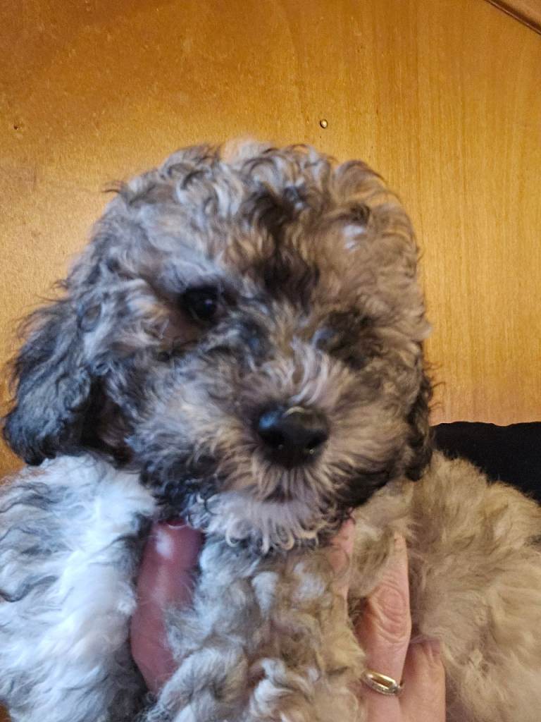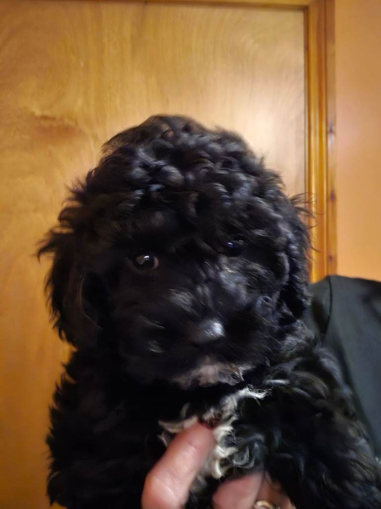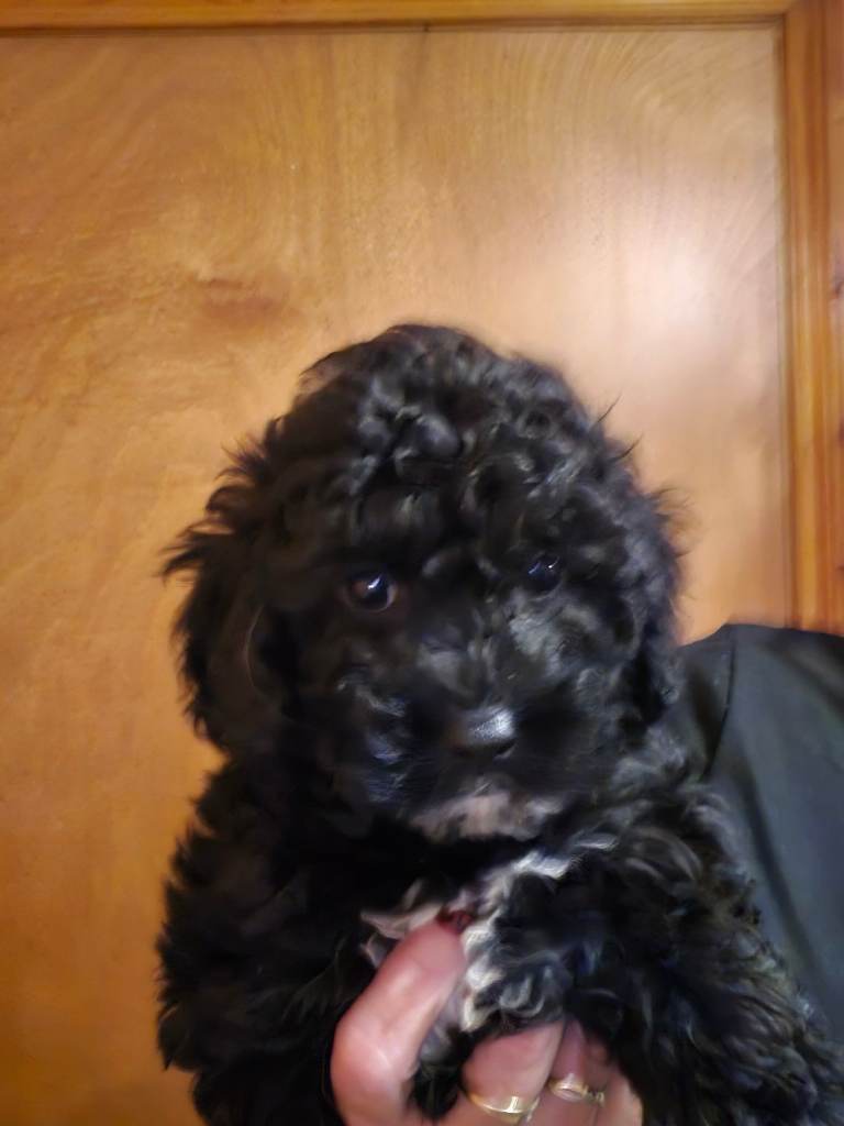 3 poochon pups for sale. 1 black male 1 blonde female 1 brindle female Pups will be ready for rehoming on the 20th january they will also be fully vacinated vet checked dewormed and deflead. pups are pad trained and penn trained.. great temperment .. also socialised with other dogs these pups are also non casting.. only genuine enterest please pups will be 10wks old as id like them fully vacinated before rehoming
