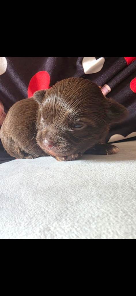 Pups measure 5 inches to the shoulder and will be very small when mature, so experienced dog homes only.