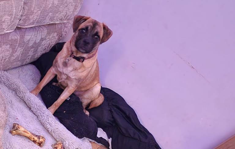 Pug cross female 8 months old spayed loves to play full of energy can live with dogs cats and children house trained very excitable needs more lead training as can pull loves cuddles attention and treats fully vaccinated and flea and worm treatment given