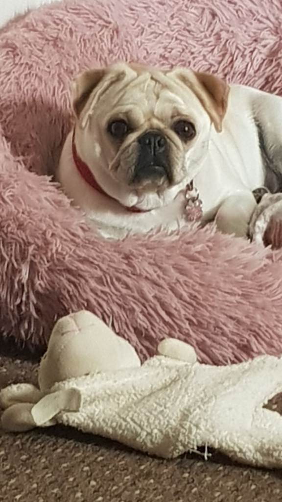 14mnt old female pug fully vaccinated micochipped flead and wormed up to date good with other dogs and kids she has not been spayed yet just had 2nd season she will come with her bed blankets loads of toys her crate and bedding food food dishes lead and harness etc only selling as I have a 13yr old dog who hasnt taken to her and not fair on him please no time wasters as sad sale £500 ovno to a good home only