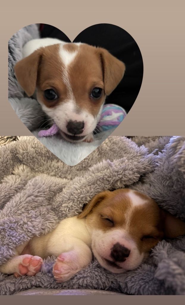 Mom is a Jack Russell-Chihuahua mix, dad is a Jack Russell.