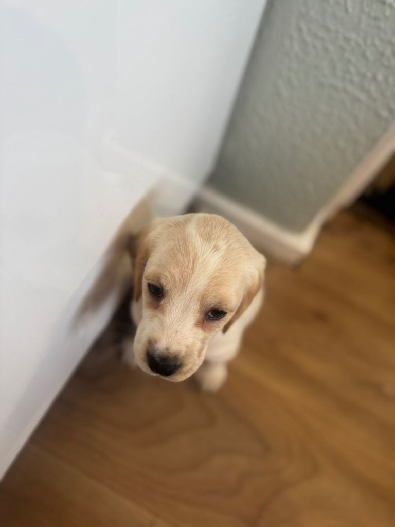 Dad is a cockador( mostly lab) and he’s golden colour.