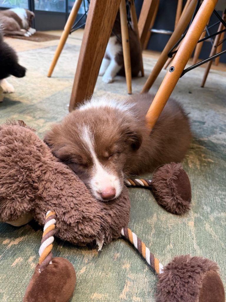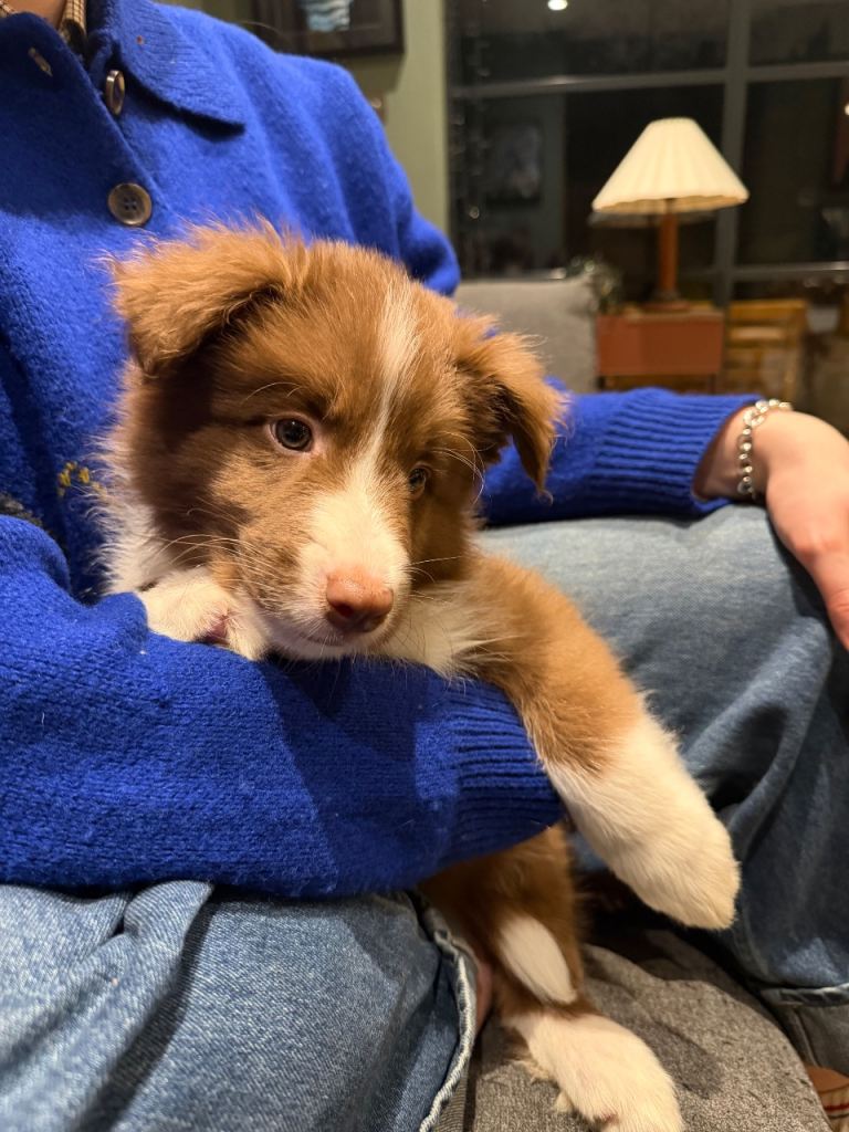 Beautiful border collie puppies. Two left from a litter of seven. Two boys looking for their forever home. One brown like the dad, one black and white like his mum. Gorgeous personalities. Gentle and like a cuddle. No breeders please. These pups come from a loving home, and are much loved.
