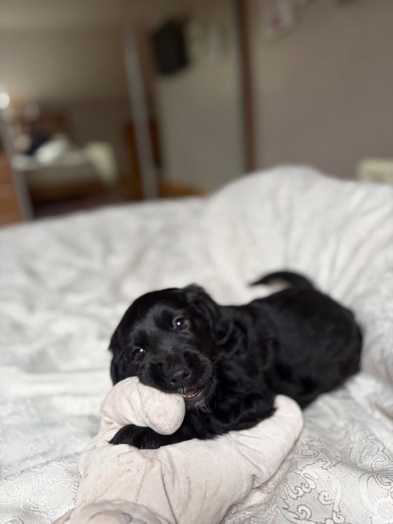 Mixed cockerspaneil puppies for sale (3/4 cocker and 1/4 collie) Smart dogs extremely friendly and used to being around children. Looking for a permanent home