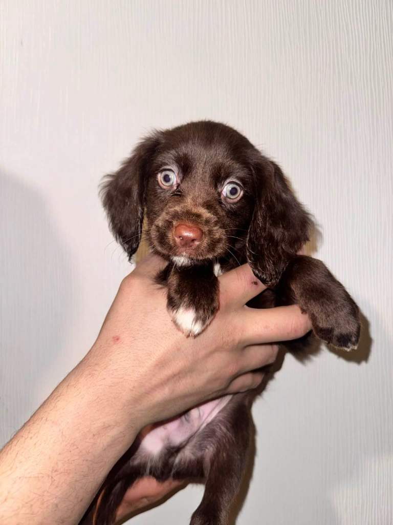 Puppy 5 blue- this a a stunning all over brown puppy , had the most entrancing green eyes. He’s very gentle and naturally inquisitive. He likes to explore his surroundings.