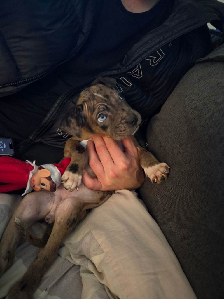 Has one blue and one brown eye. Has been handled by adults and children from 1 week old, loves a good run about but also love curling up on your knee and cuddling in. Ready to leave Now.