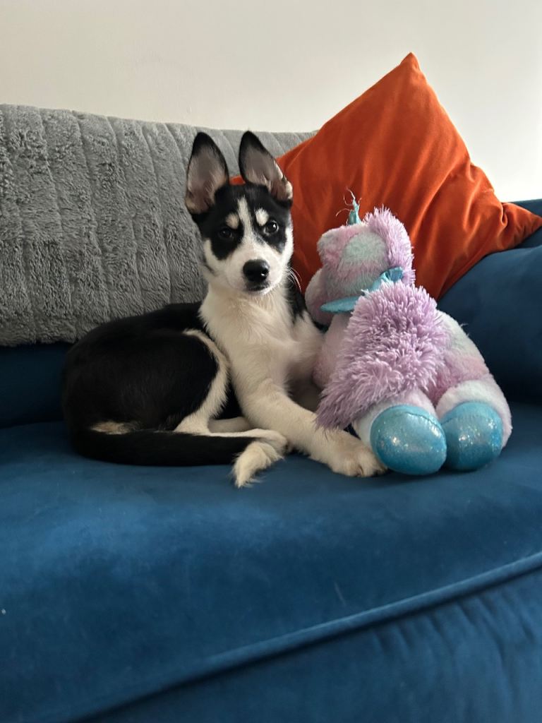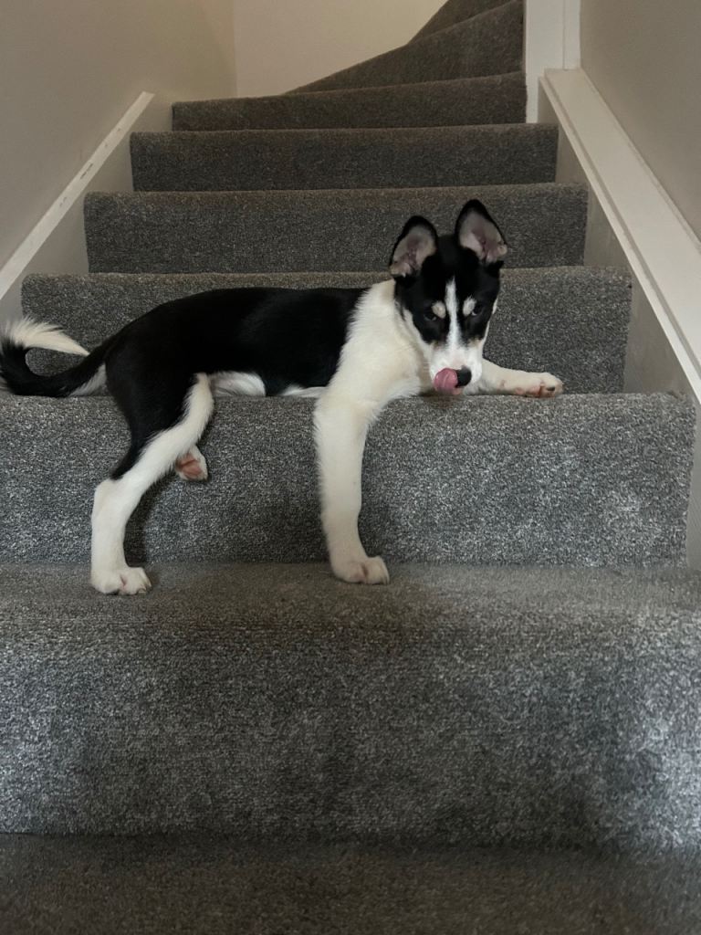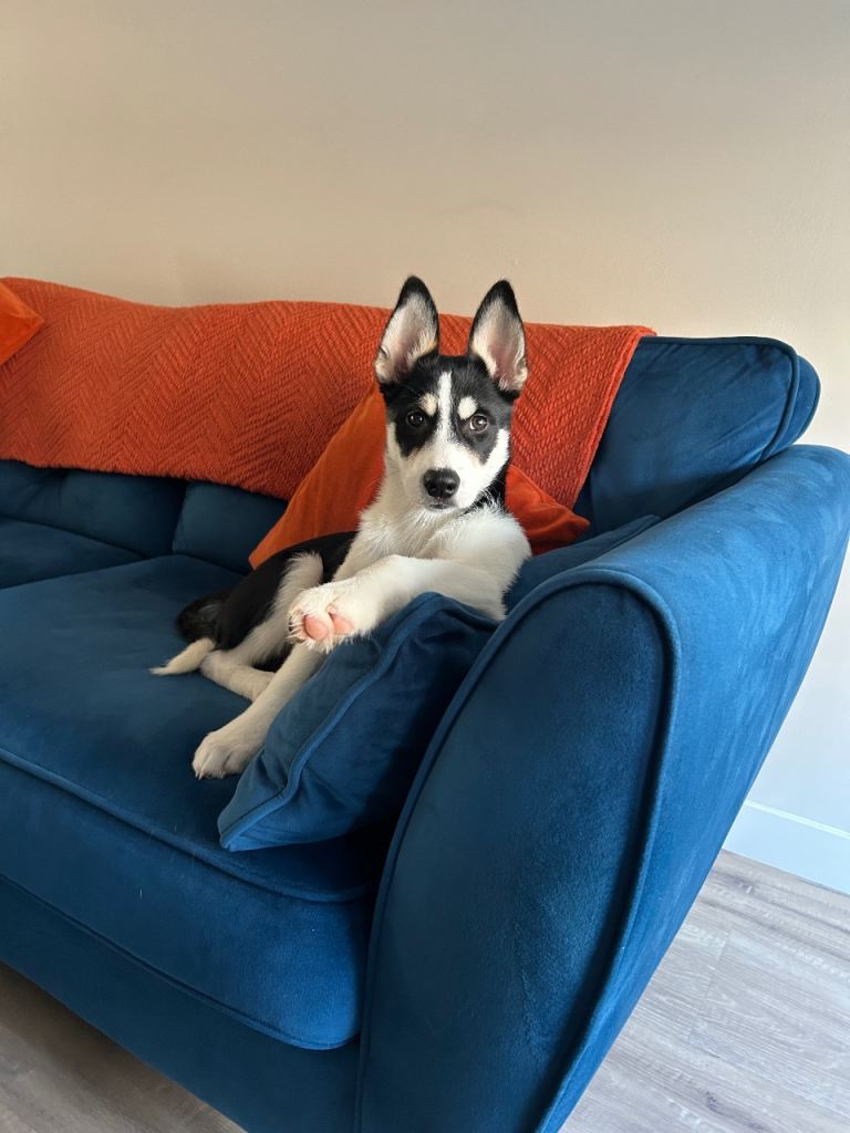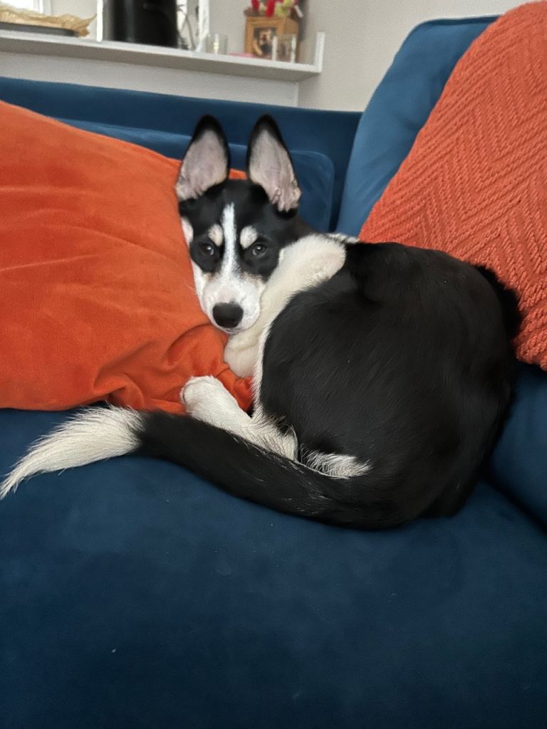 Due to unfortunate circumstances I am having to re-home my gorgeous little puppy. She is 16 weeks old. Border collie / husky cross. She has lots of energy, she loves cuddles and long walks. She is such a loving girl and would be a great addition to a happy loving household. She is good with children and other dogs. She is so playful and fun! I want her to have a happy life and to be loved and taken care of. If you are interested or would like further details then please contact me. She is doing great with her toilet training and goes out to the garden every hour and overnight she sleeps well. She will come with her bed, blankets, food and water bowl, her harness / lead, a jacket and her toys.