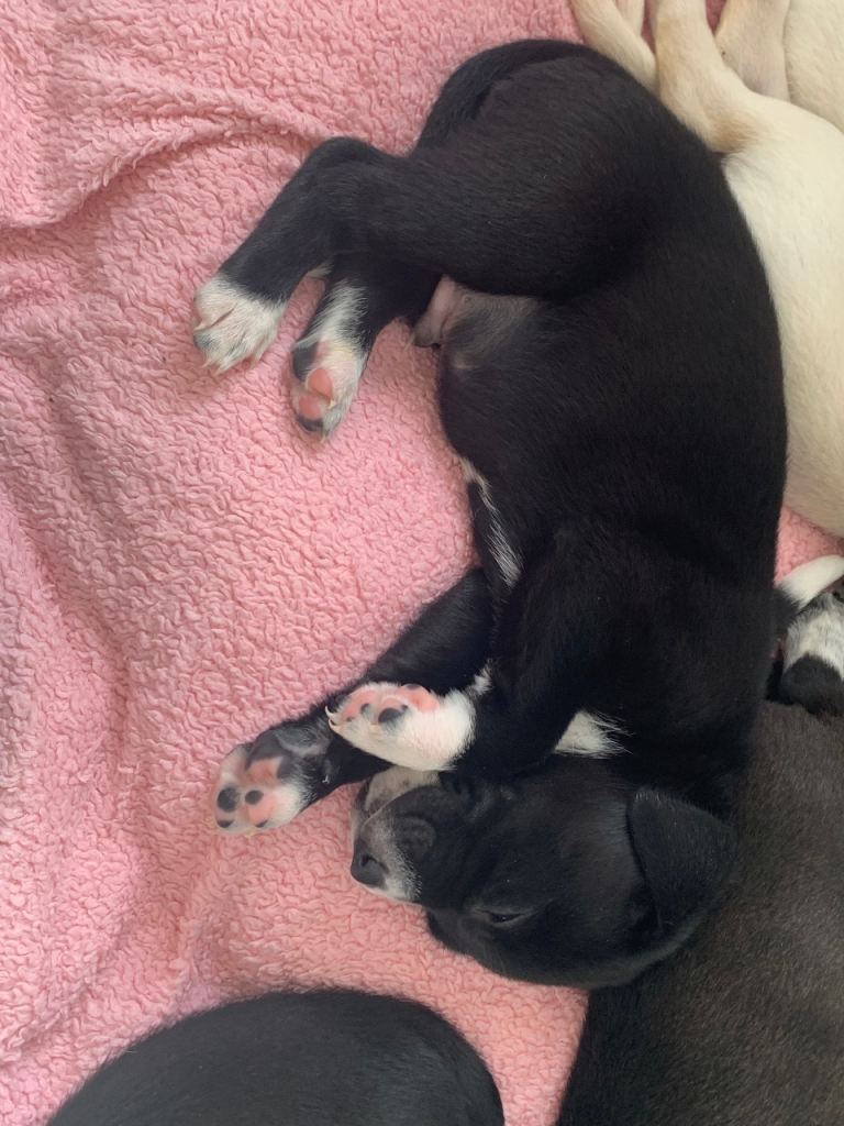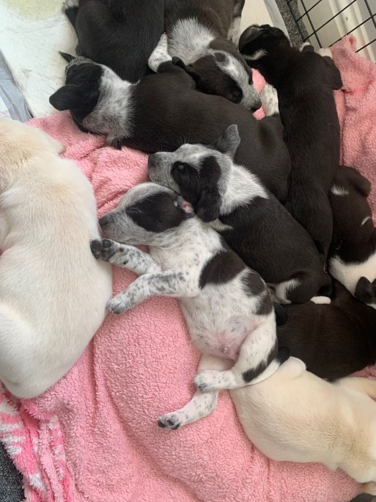 They are all eating well, weaned onto biscuits and milk for vitamins as mum was struggling to keep up with demand! The pups will be flead, wormed and microchipped ready for collection!