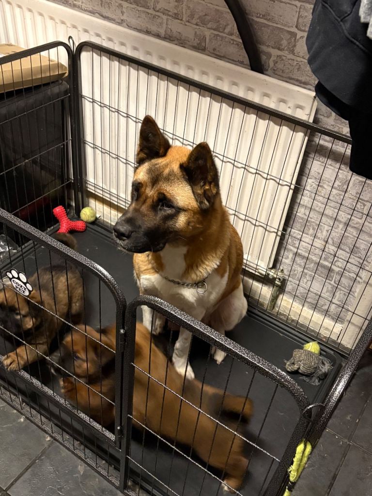 We have 2 Rottweiler x American Akita pups 2 girls and