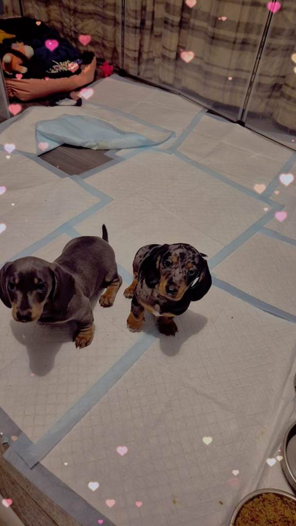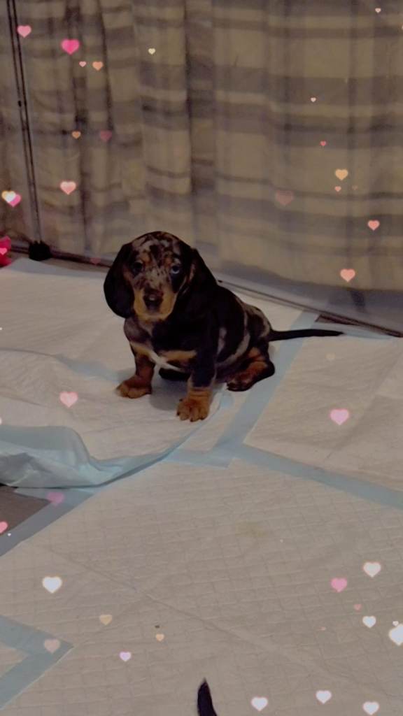 We got one dapple girl and blue male both been fleaed wormed .both very playfull good with kids all ages good with cats and other dogs eating wet and dry food 9weeks old using puppy pads